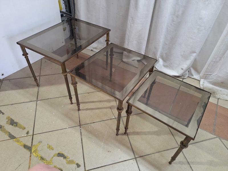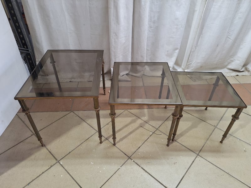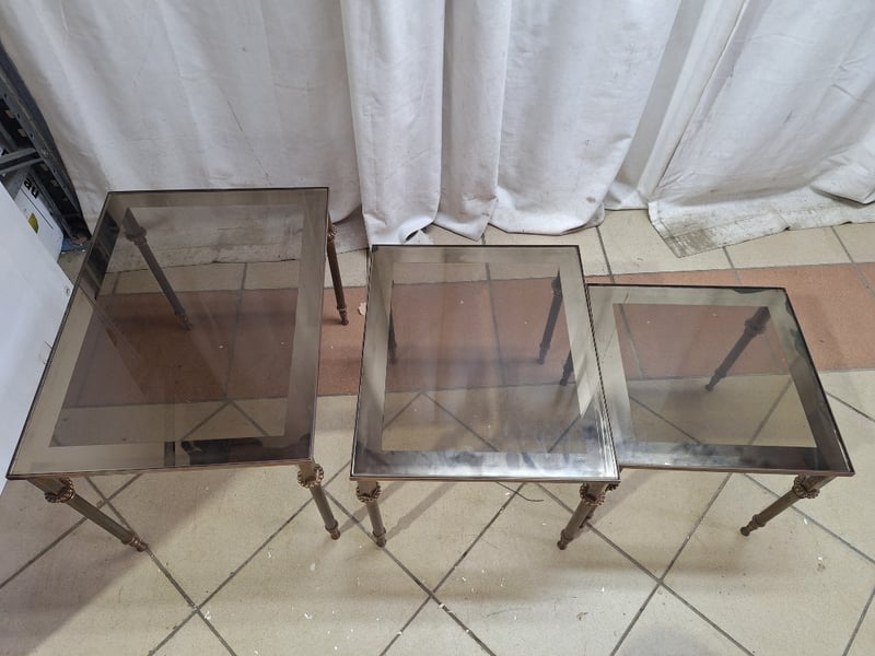 Set of 3 Glass Coffee Tables, Stackable, Metal Style, Gold Finish