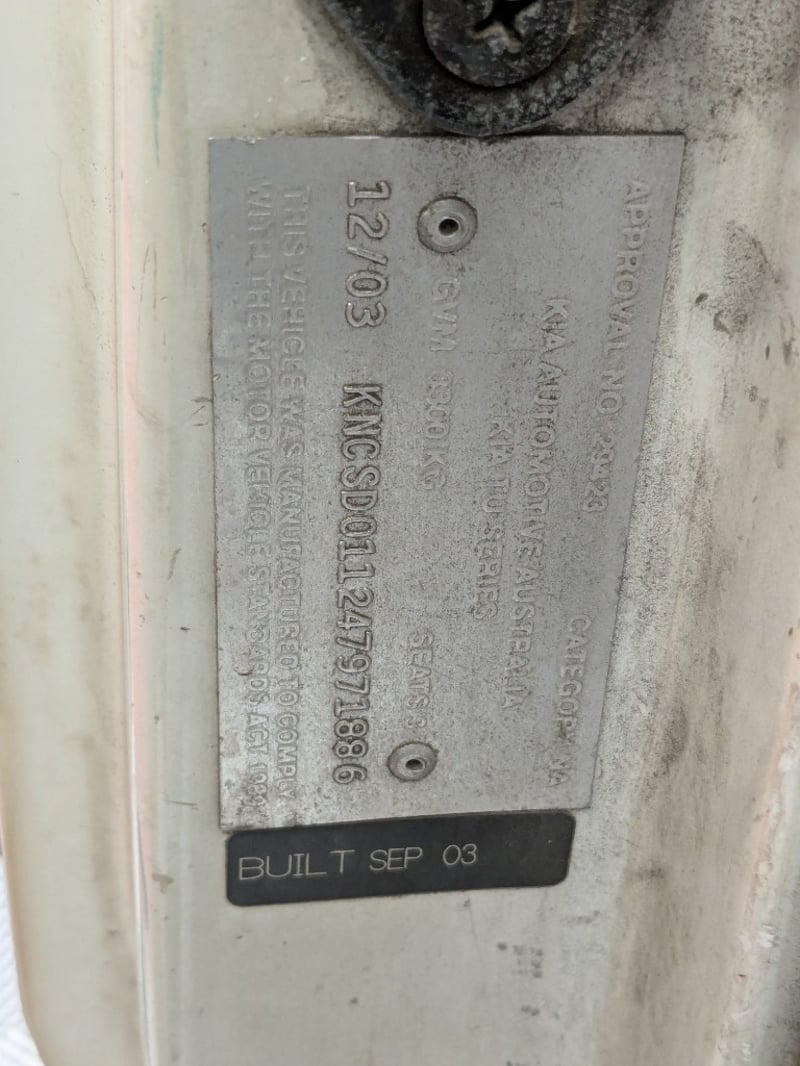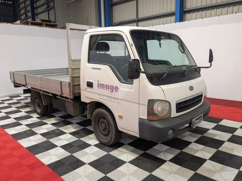 2003 Kia K2700 FR Year: 2003 Make: Kia Model: K2700 Series: FR Body: 2-Door Drive Type: Front wheel drive Odometer: Indicating 409,385 Kilometers Engine: 2.7 Transmission: 5-Speed Manual Colour: White Seats: 3 Description/extras: Air Conditioning, Power windows, CD player. Spare tyre, long tray, USB charging port, Rust, mark's and scratches, missing plastic piece, crack in windscreen, interior wear and tear. VIN: KNCSD011247971886 ENG No: J2363136 (as per PPSR) (Key #R18) Lloyds stock #584380+1