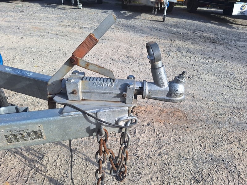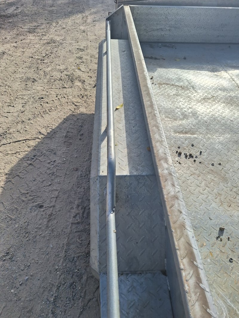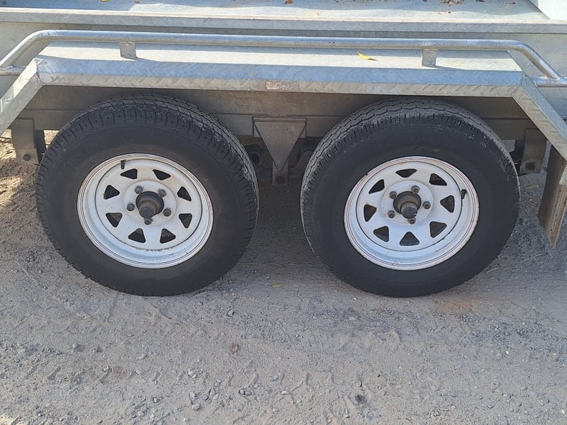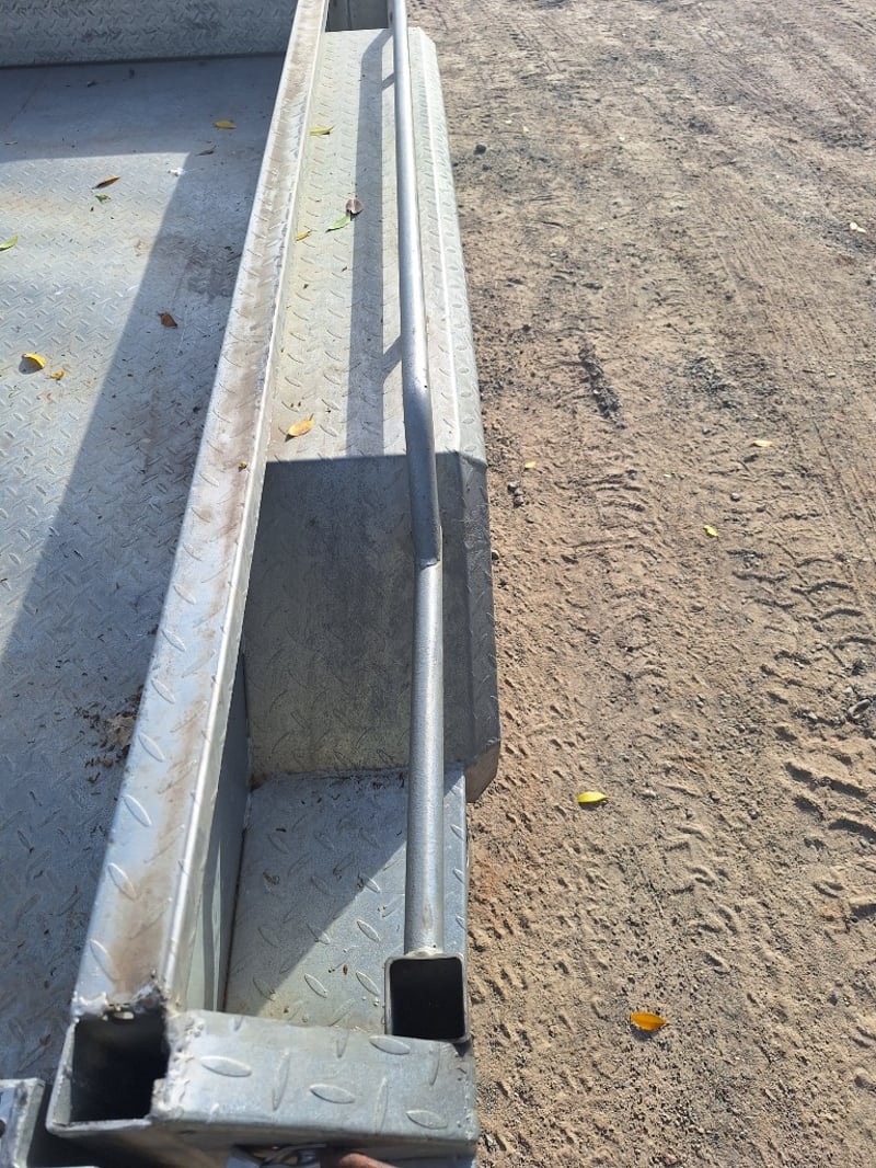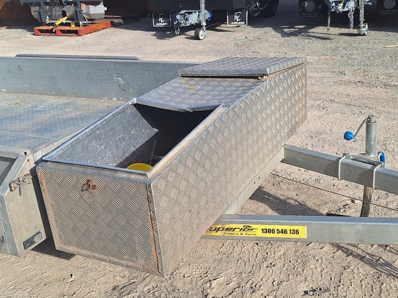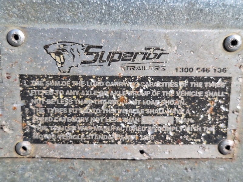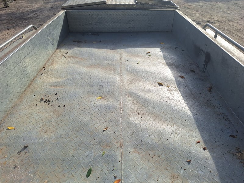 Description/Extras: 8x5 Dual Axle Box Trailer, 50mm Hitch Broken Jockey Wheel, Handbrake, 7-Pin Flat Male Connection, Front Mounted Checkerplate Box 1 x Lid Missing, Other Needs Repair
