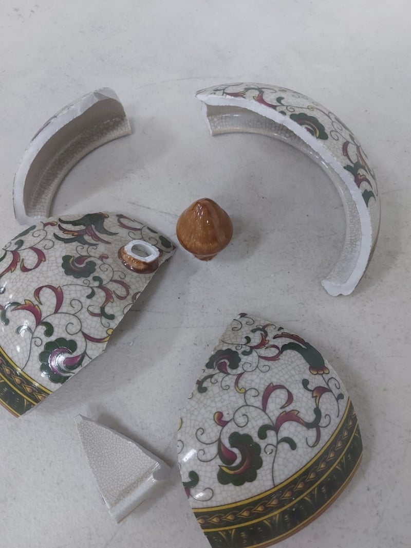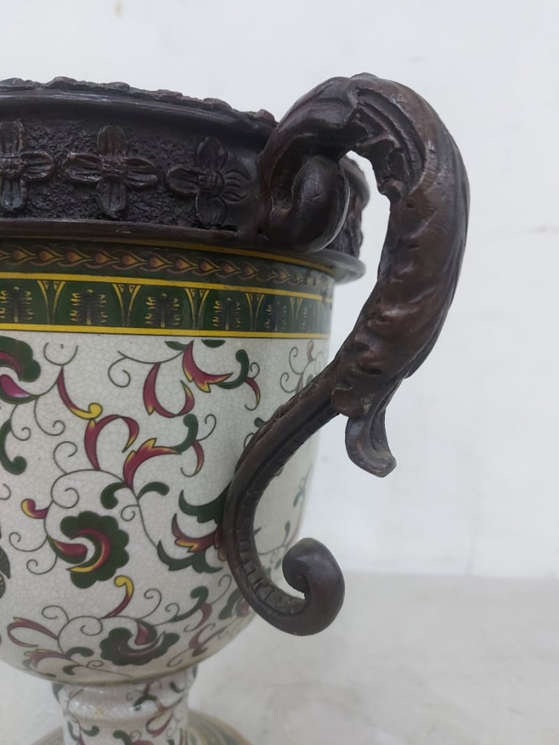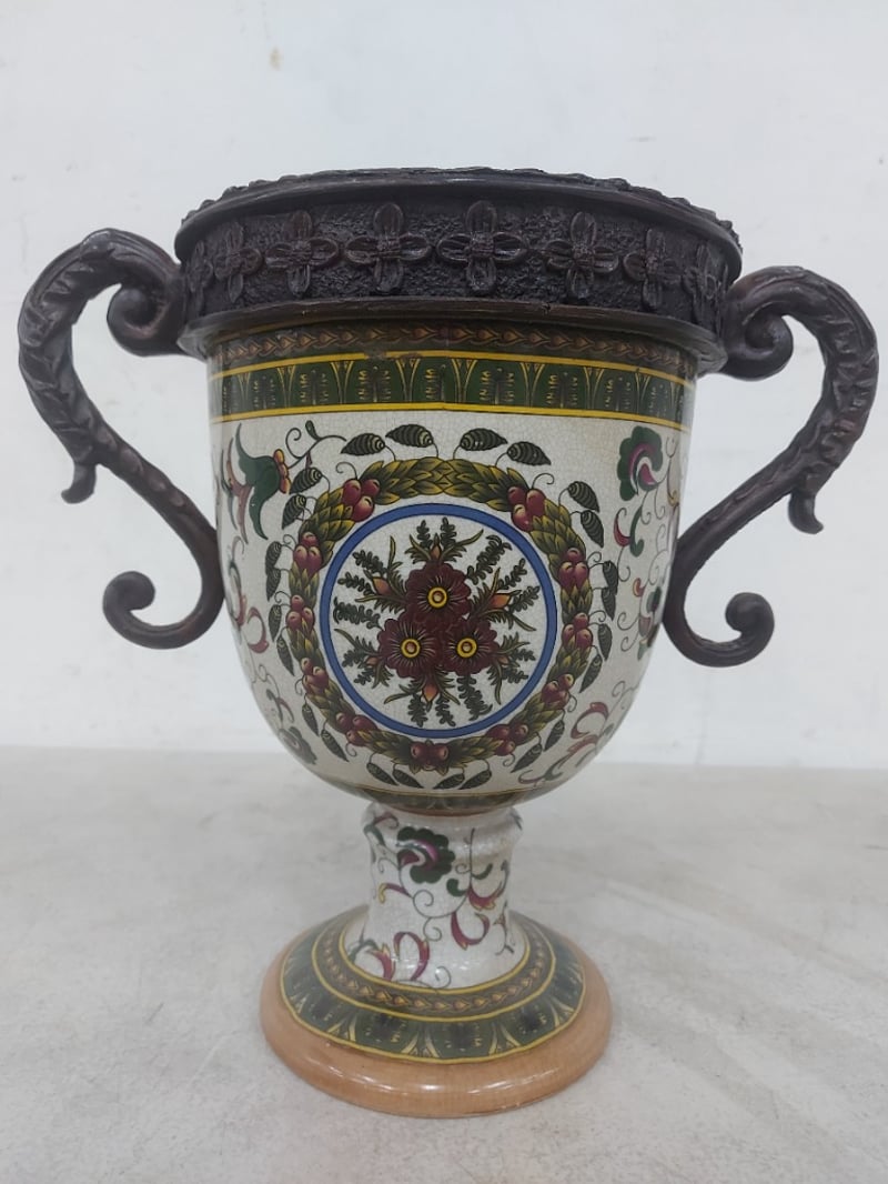 Vase, Ceramic, Ornate HandlesNote: Lid has broken and requires repairDimensions: H 29cm x D 32cm x W 20.5cm