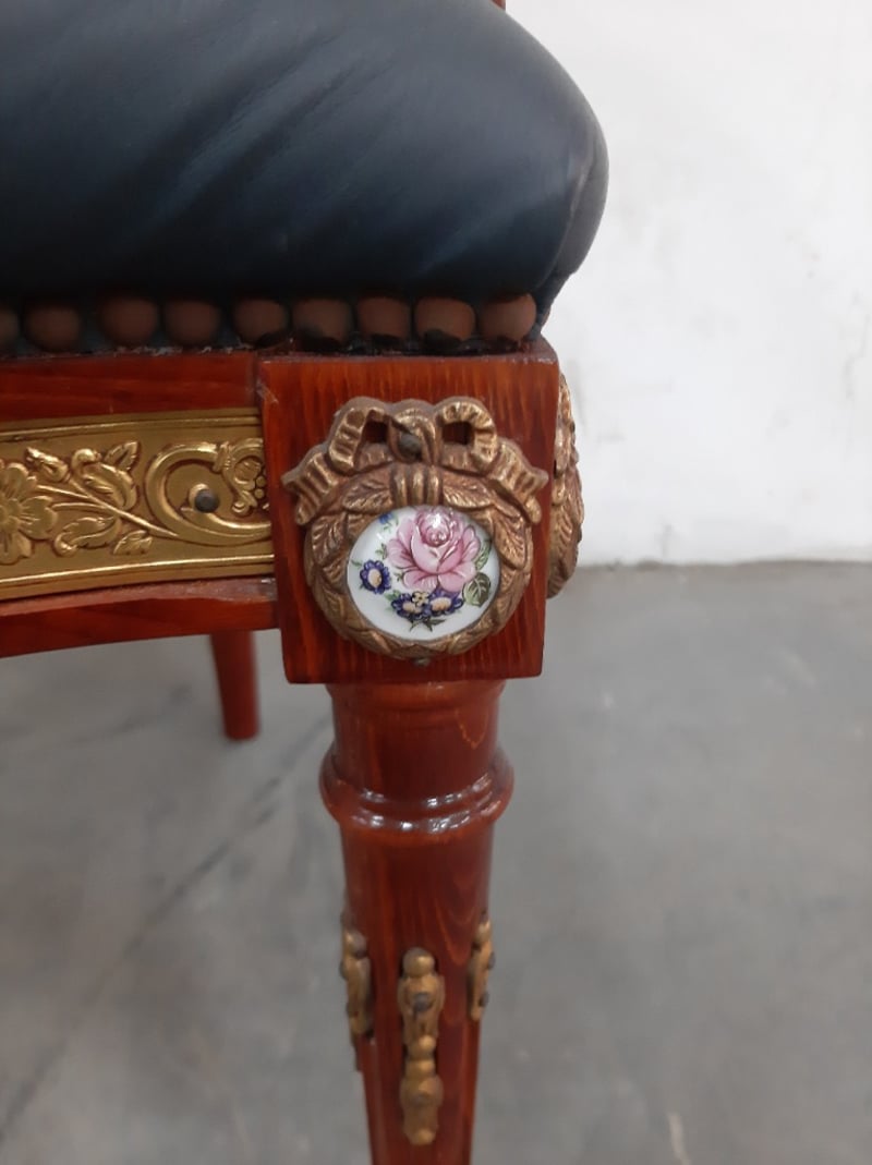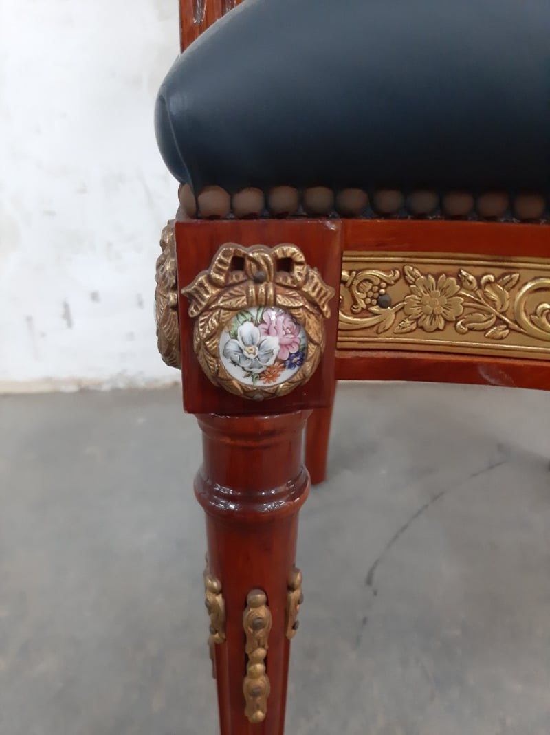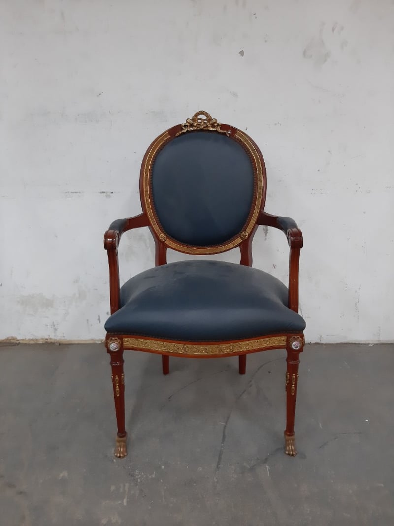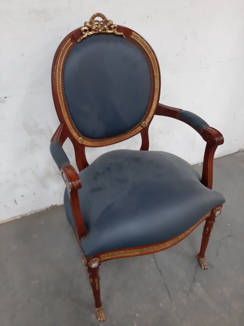 Dining Chair, Dark Timber, Blue Finish Cushioned Seating and Back Dimensions: H 100cm x W 70cm x L 60cm BID PER EACH, MUST TAKE 2