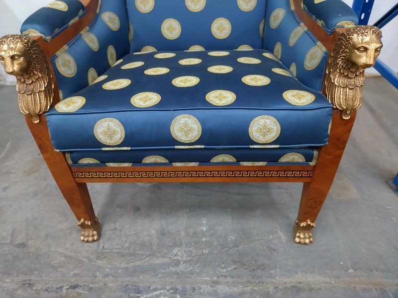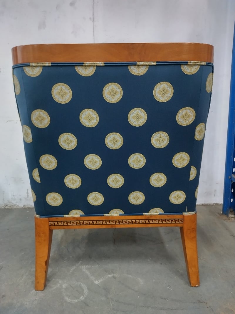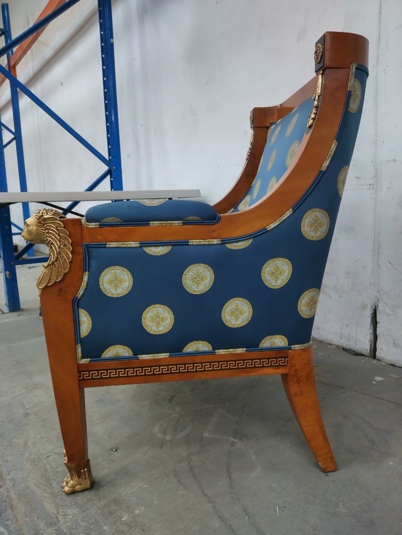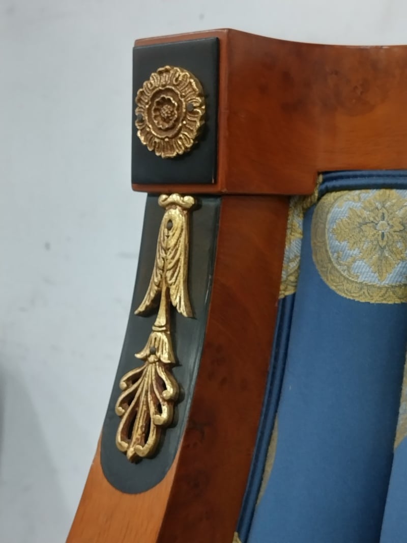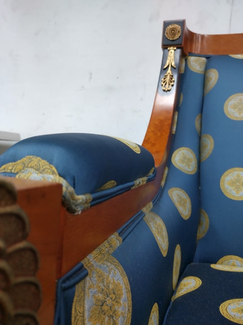 Solid timber blue finish cushioned chair, with one back cushionDimensions: H 100cm x W 76cm x D 70cmBID PER EACH, MUST TAKE 2