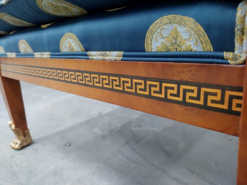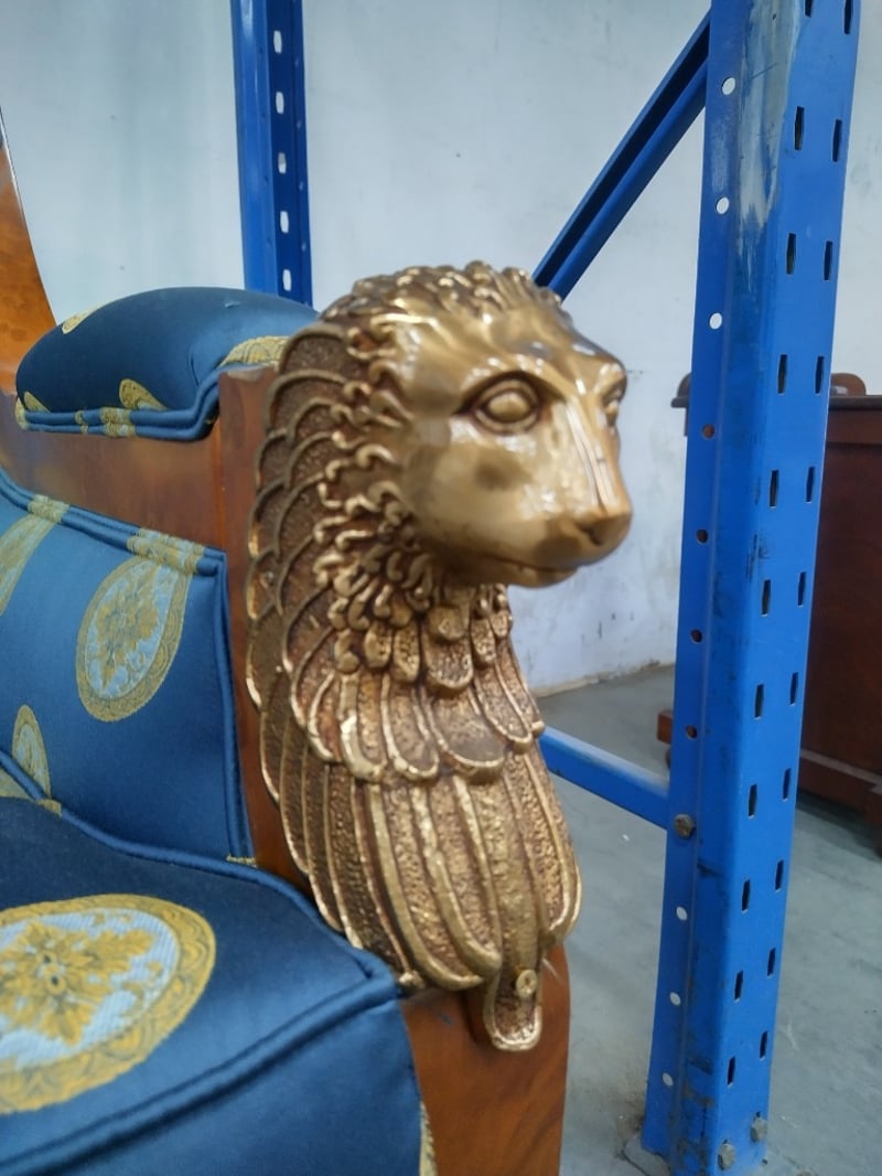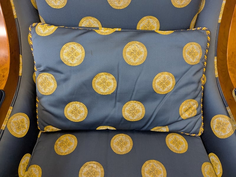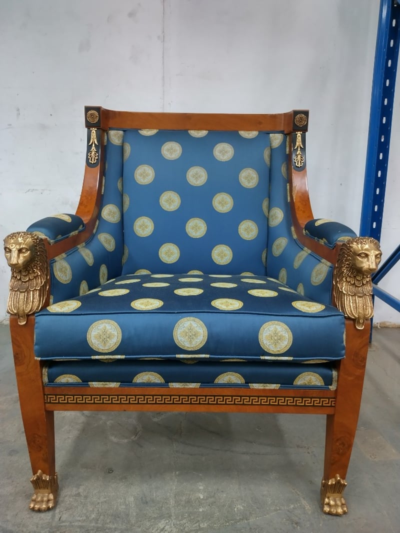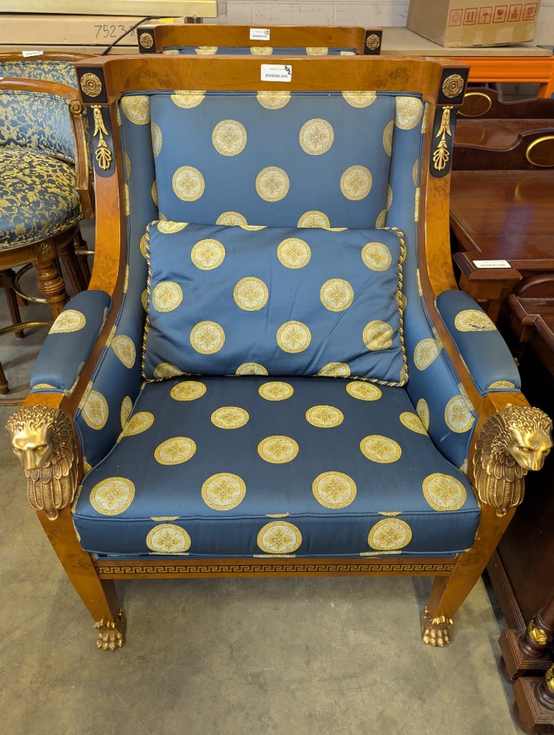 Solid timber blue finish cushioned chair, with one back cushionDimensions: H 100cm x W 76cm x D 70cmBID PER EACH, MUST TAKE 2