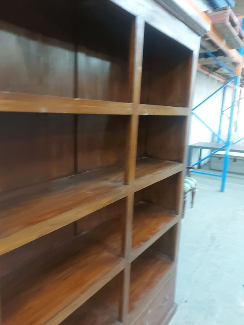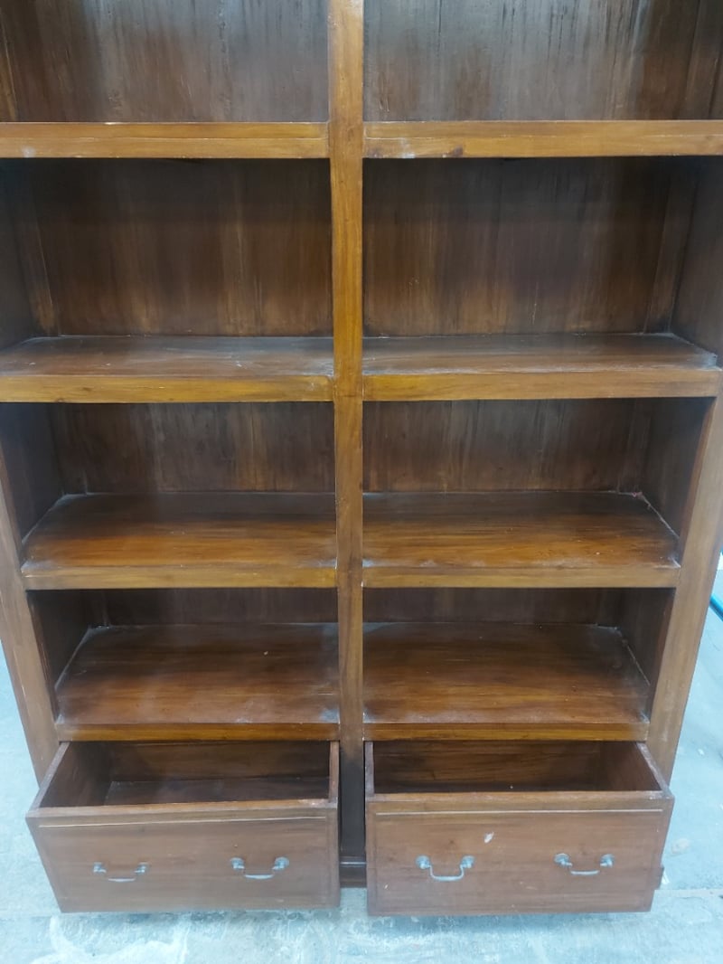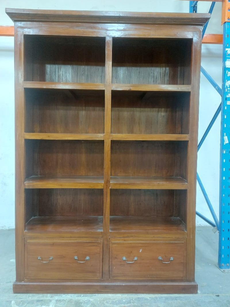 Bookshelf, Solid dark timber, 2 lower drawersDimensions: H 200cm x W 131.5cm x D 37cm