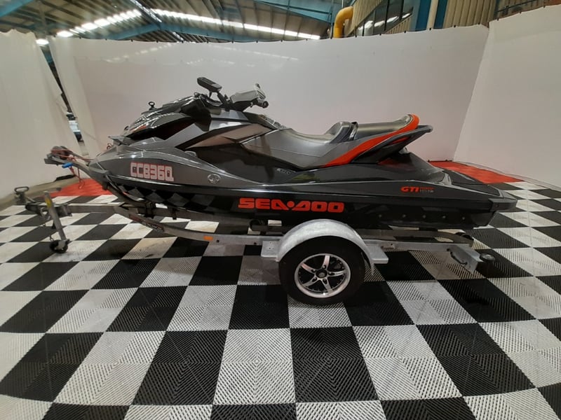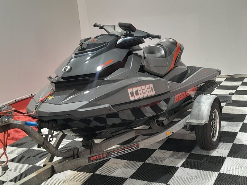 Description: NO KEY for this vessel, Key is missing, ski is in clean condition comes with sounder, 155 hp Rotax engine, variable trim system, cruise control, ibr brake and reverse system, 3 seat rider, tow hook and many more features, box of extras also including life jackets, flares and v sheet, bail bucket, trailer lock, anchor LED light, anchor with rope, boat protective cover
