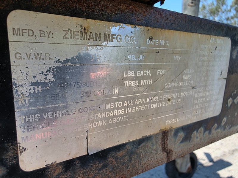 Duel JetSki Trailer Year: Unknown Make: Zieman MFG Co. Colour: Black Configuration: Single Axle Description/ extras: Major rust present throughout, Winch bracket unhooked, Lockable Toolbox, Spare Tyre, VIN: 1ZCS160133Z334540 Length Overall: GVM: Unknown GCM: Unknown Tare: Unknown ATM: Unknown #MMR
