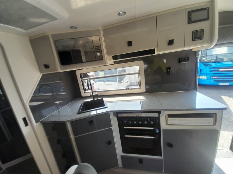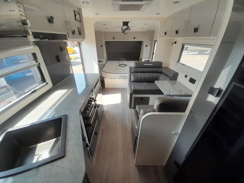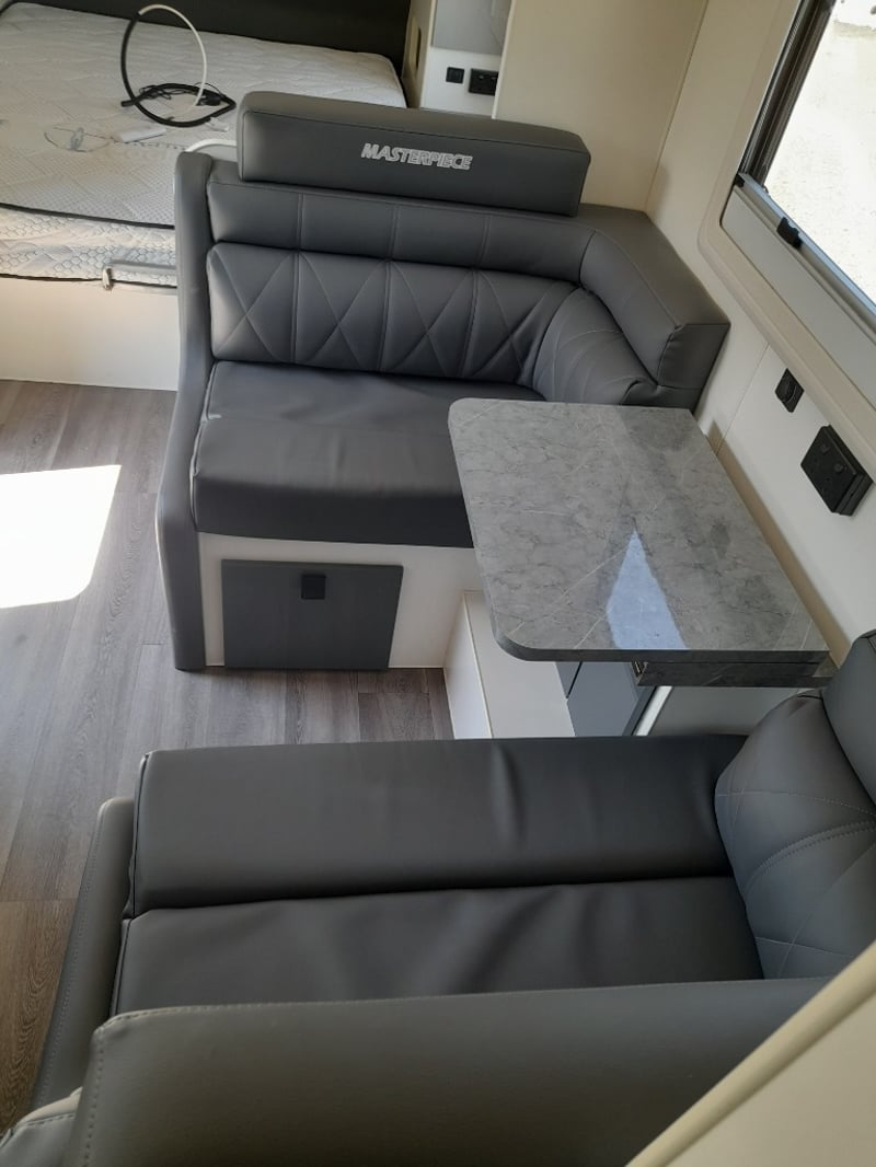 Description/ extras: prestigious caravan, queen size bed, beautiful and quite large ensuite, stylish kitchen and dinettewith leather finish lounge Seats, micro wave, fridge freezer, Hot water, roll out awning, solar power, sky lights, 2 x gas bottles, TV, shower and toilet, 4 burner stove top and oven, fire extinguisher, cd player with blutooth, external lockable toolboxes, plenty of cupboard space, external power points, 12V battery system, 7 pin flat lead, and lots more comfort enhancing features