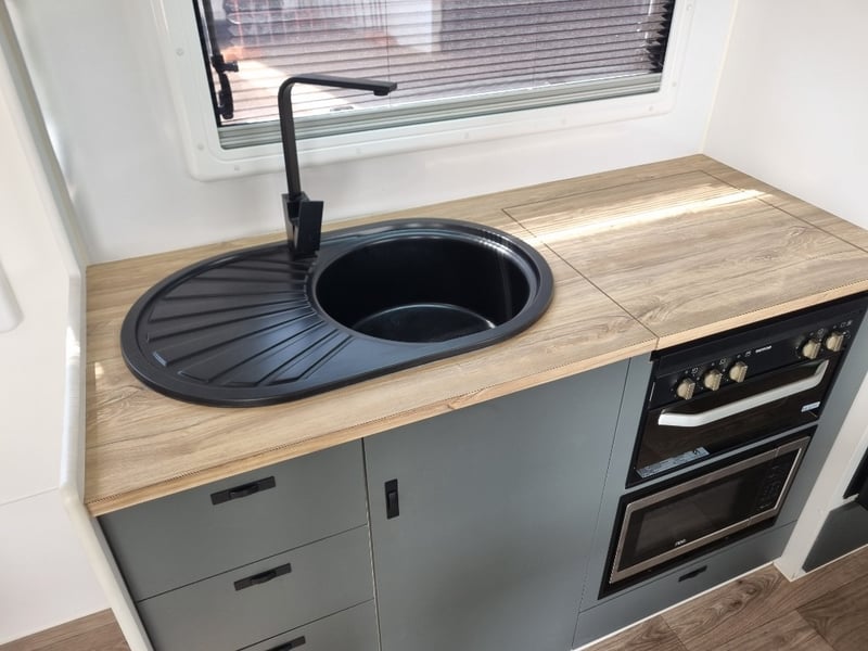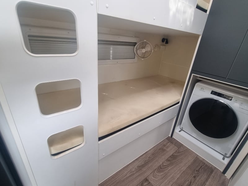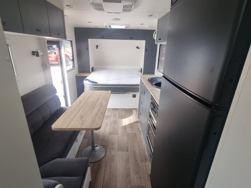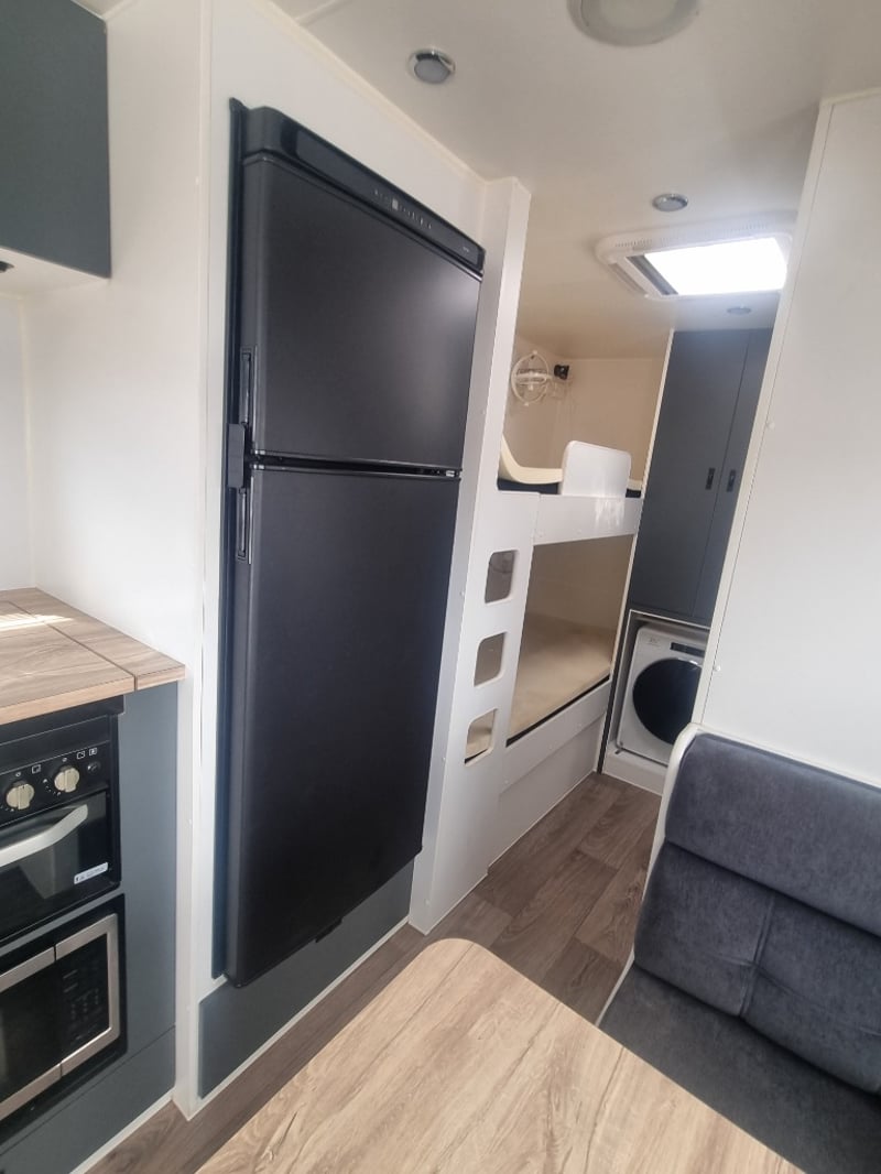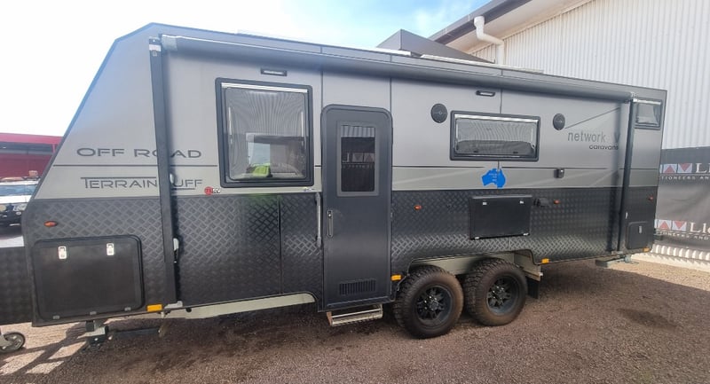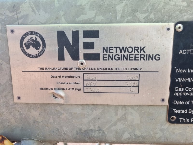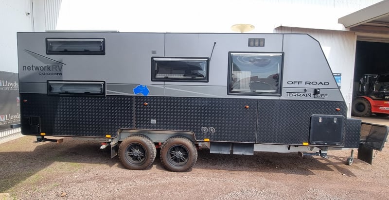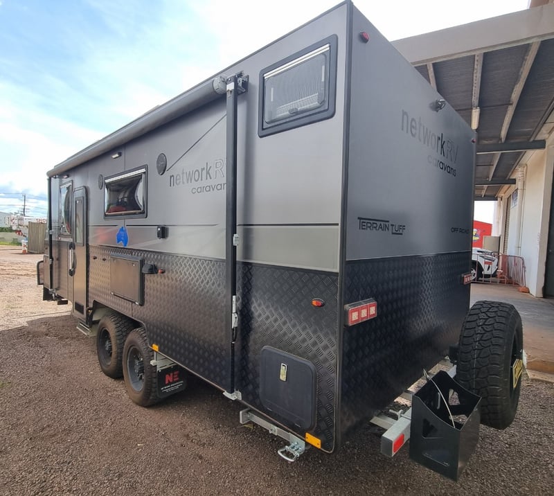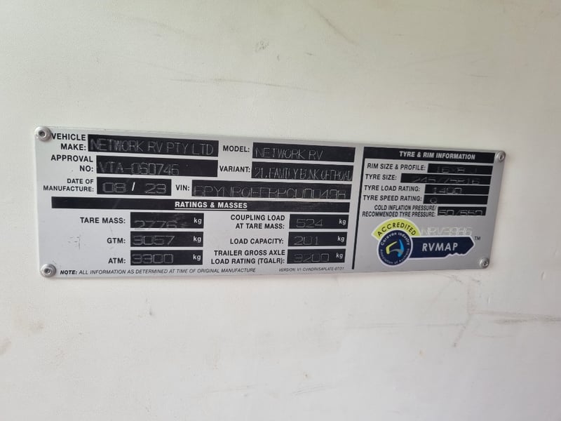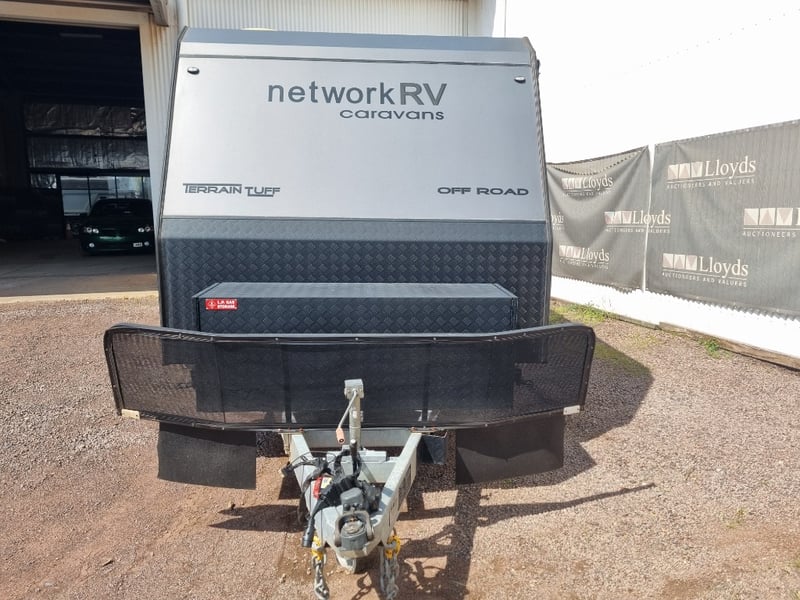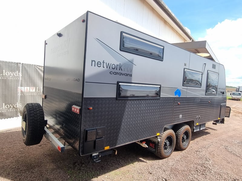 2023 Network RV Caravan Year: 2023 Make: Network RV Pty Ltd Model: Network RV Variant: 21,FAMILY BUNK OFF ROAD VIN: 6PYNROFFRPC000498 Body: Caravan Length: 8900mmL x 2400mm W Aprrox Colour: Grey/Black Configuration: Dual Axle Description/ extras: Double bunk family van , extended A-Frame , stone guard , jerry can holder , oval slide toolbox , 3000w invertor , solar panels Tare: 2776 kg ATM: 3300 kg GTM: 3057 kg Key# - MMR1, NT #MMR