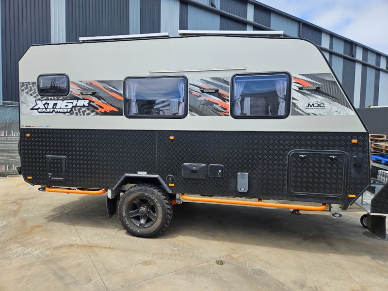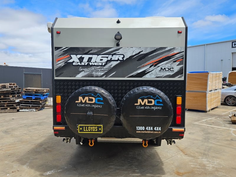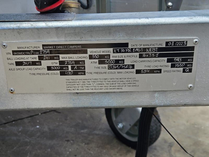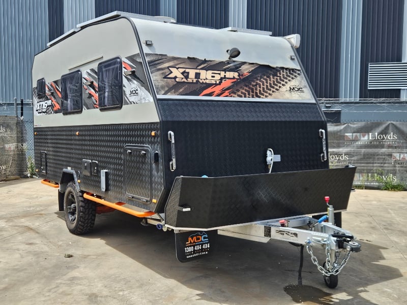 2023 Market Direct Campers XT16HR East West CaravanYear: 2023Make: Market Direct CampersModel: XT16HR East WestBody: CaravanColour: Grey/BlackConfiguration: Single AxelDescription/ extras: Drawers, Double bed, lounge area, fridge, toilet, shower, sinks, indoor and outdoor cooktop, lights, fans, electrical plugs, pillowsVIN: 6KSMDCTRLPC002759 Tare: 2417 kgATM: 3000 kg#MMRKey#B20