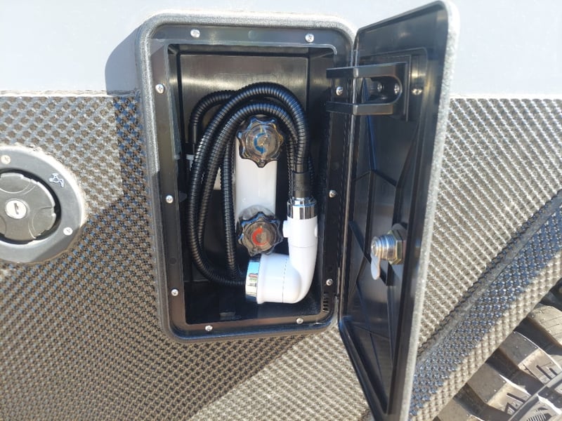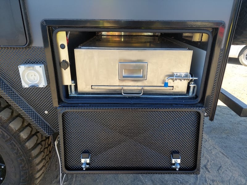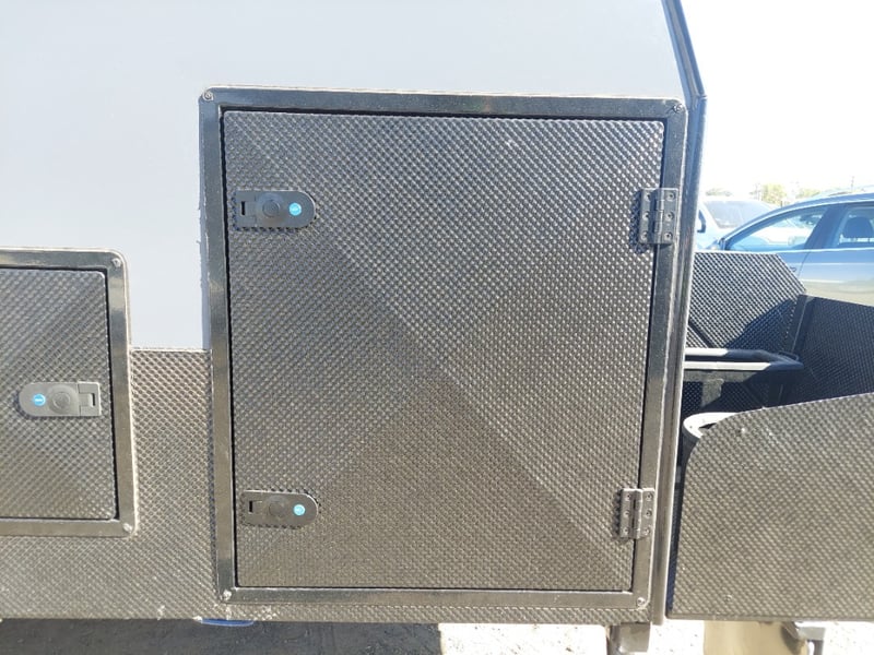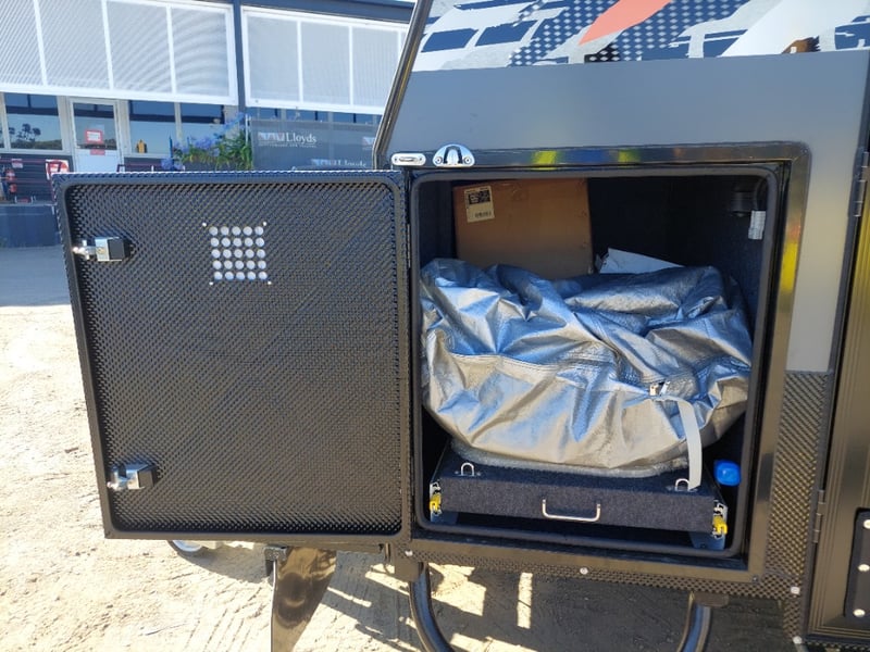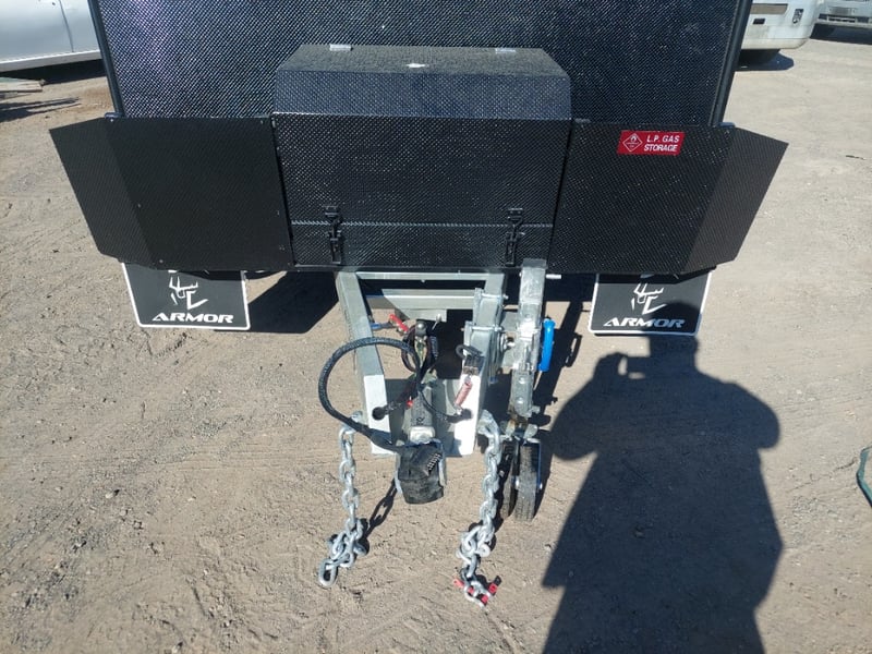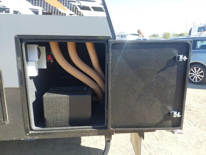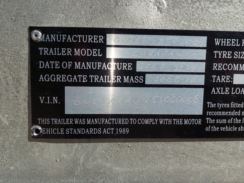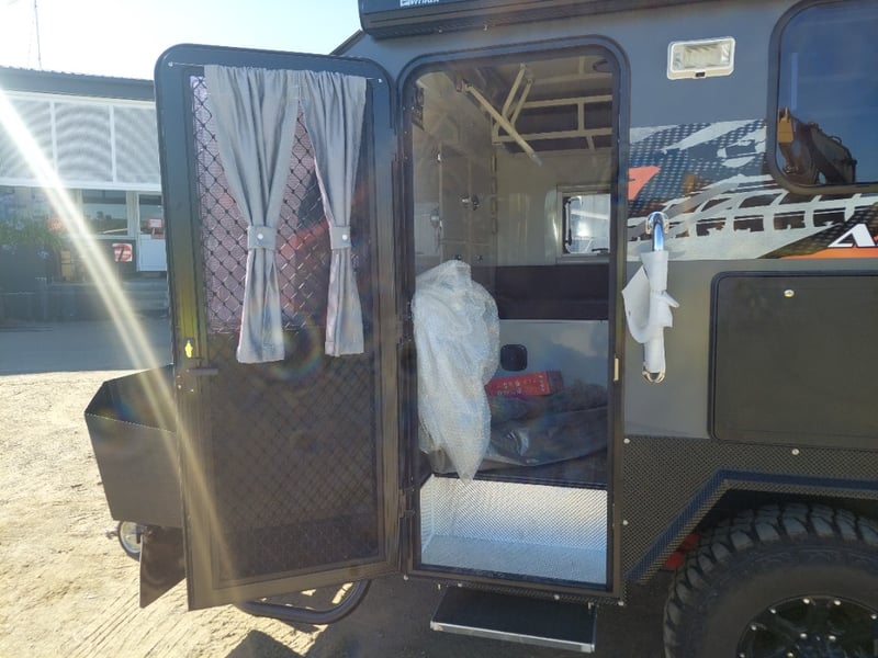 ARMOR AX11 Year: 2025 Make: AX11 Model: Armor AX11 Body: Caravan Colour: Black/Grey Configuration: Single Axle Size: 4800 L x 2150 W x 2350 H mm Tare: 1500 kgs ATM: 2000 kgs Draw-bar: Total Draw-bar size: 2530 mm (includes coupling 2740 mm) Chassis: Extra Heavy-Duty off-road frame Ball Weight: 100 KG TARE Weight: 1500 KG ATM: 2000 KG - Toolbox Size: 450 L x 750 W x 540 H mm - Fridge box Size: 750 L x 480 W x 580 H mm - Suspension: Coil spring, twin shock absorbers, independent trailing arm - Wheels and Tyres: 4 x Alloy Wheels, 2 X Brand New Spare 16” 6-stud Land-cruiser pattern tyres and rims (265/75R16) - Brakes: 4WD 12 inch Electric Brakes plus additional Hand Brake - Coupling: Off-road Heavy-Duty coupling with double safety chains - Finish: Hot-Dip Galvanised steel frame - Jockey Wheel: ARK XO 750 Series heavy duty dual jockey wheel - Jerry Can Holder: 2 x Jerry can holders - Water tank: 80 + 40 Litre water tanks - Gas Bottle holder: 2 x Gas bottle holders (9 KG bottles) • Step: Aluminium stepper 1pc assembled under caravan door • Door: New designing good quality door with lockable security screen door & curtain for privacy on door window, caravan window includes anti-mosquito mesh and shade curtain • Rim: Aluminium black alloy rim • Tap: Good quality hot and cold foldable tap 2pcs • TV: Includes with wall mount. Vin: 6NRCARAVNSS000008 KEY# MMR4 #MMR
