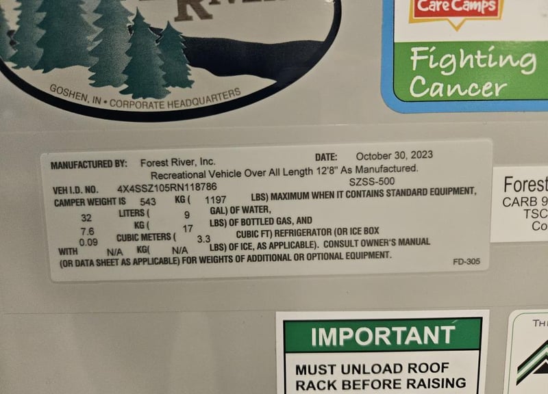 2023 Slide on camper Palimino SS 500Make: Forest river incModel: SS 500Year: 2023Serial no: 4X4SSZ105RN118786Camper weight: 543kgApproximate dimensions: 3.9m long x 1.9m high x 2.0m wideDescription: unused slide on electric pop top camper, queen size bed, fridge, sink, cupboard, dining seats, holds 32 litres of water, external storage areas, Key no: E16#MMR