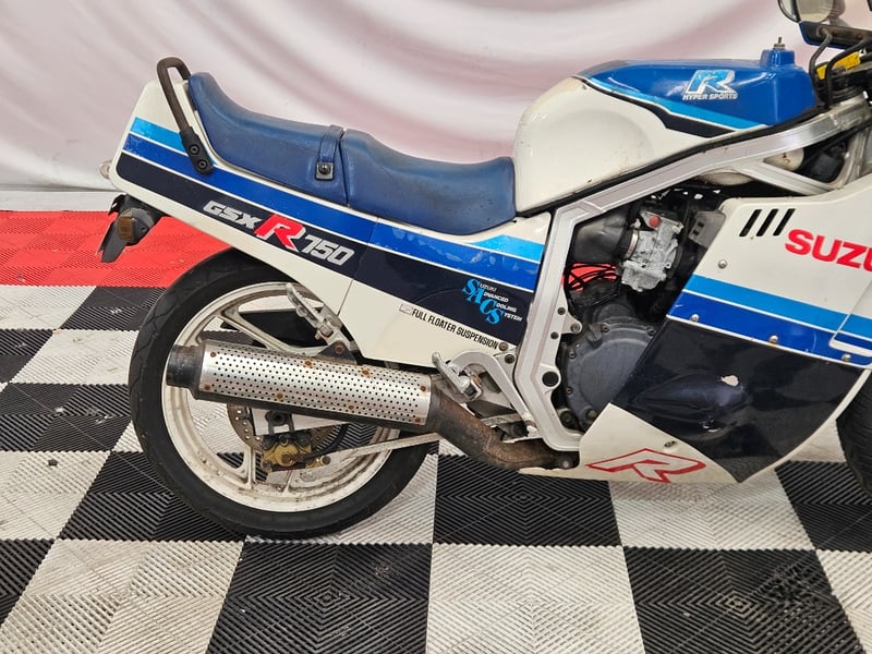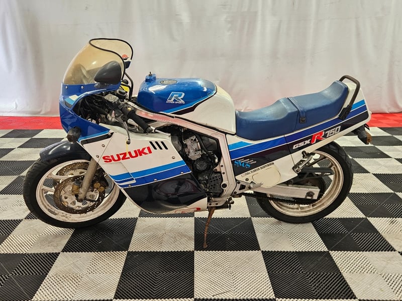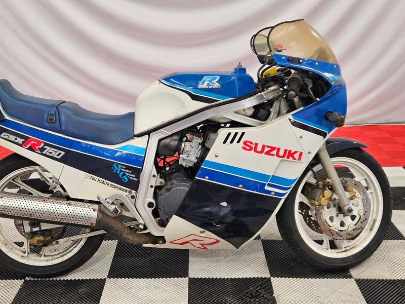 1985 Suzuki GSXR750 - Blue Year: 1985 Make: Suzuki Model: GSXR750 Body: Motorcycle Drive Type: Rear Wheel Drive Odometer: 50,598 km Engine: 750 cc Petrol Engine Transmission: Colour: Blue Seats: 1 Description/extras: Vendor Reports: very rare Suzuki race bike VIN: GR75A105940 ENG No: R705109684 #MMR Key#: B24 Lloyds Stock #990939+1
