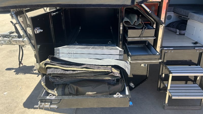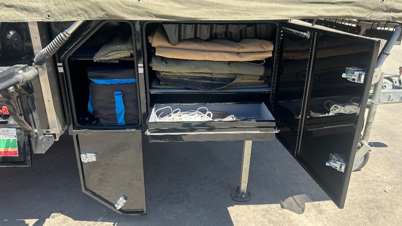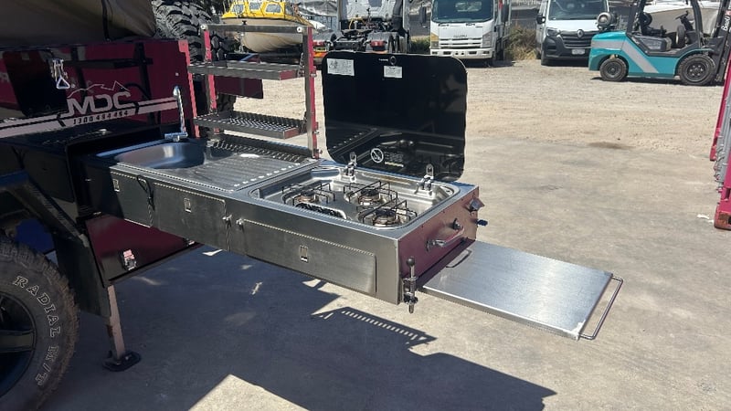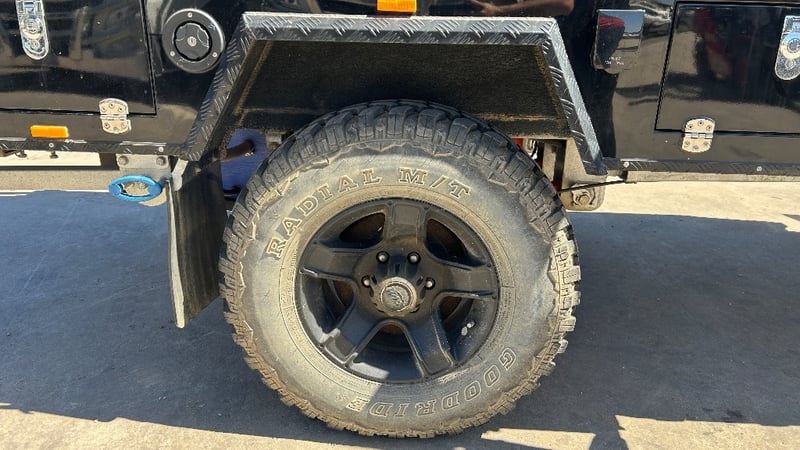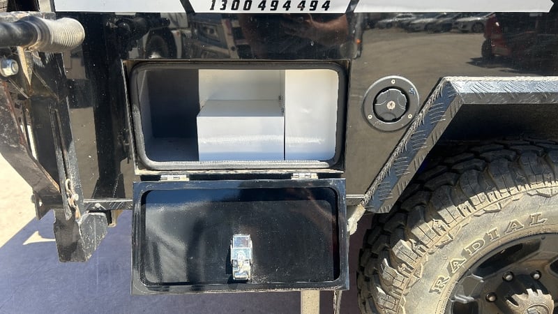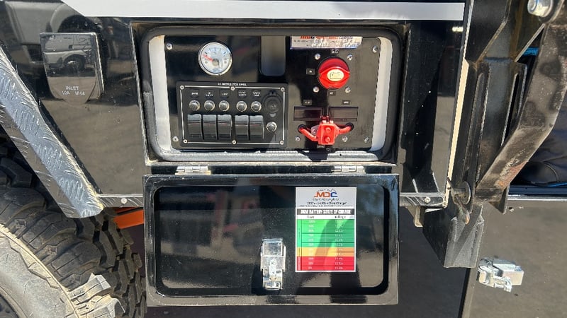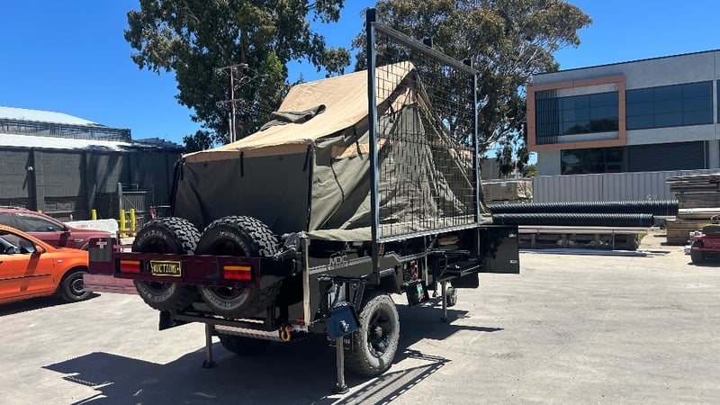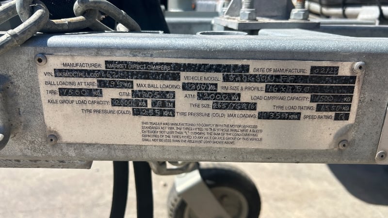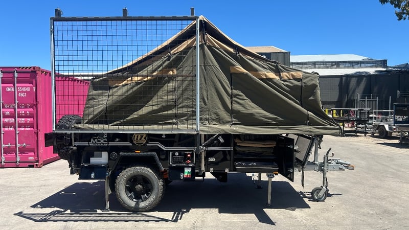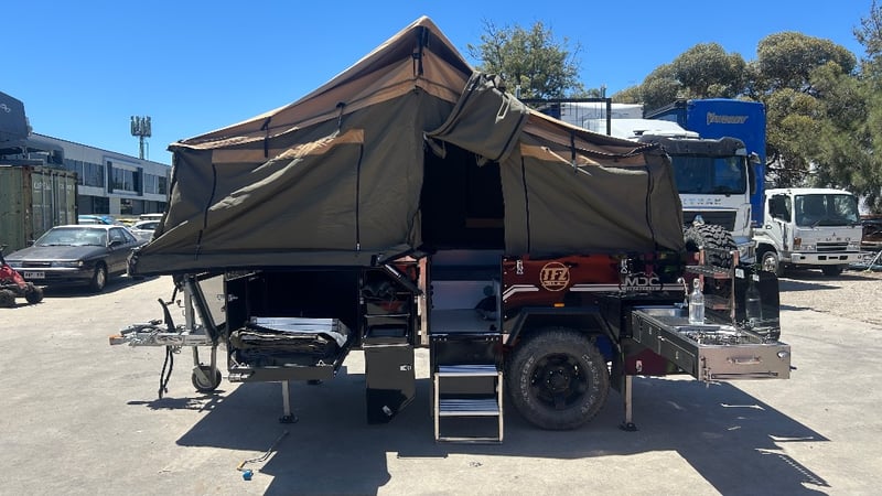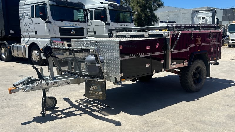 2020 MDC Jackson Forward Fold Camper Trailer Year: 2020 Make: Market Direct Campers Model: Jackson FF Body: Camper Length (overall / travel): ~ 5.30 m Width (body /closed): ~ 1.80 m Height (travel / closed): ~ 1.80 m Colour: Black Configuration: Single Axel Description/ extras: Includes multiple keys & folder, Independent suspension with trailing arms, coil springs, dual shock absorbers. Electric drum brakes + alloy wheels with mud-terrain tyres, suitable for towing on unsealed/rough tracks. Stainless-steel slide-out kitchen (sink + stove/cooktop). Water storage: ~110 L fresh water tank. , Dual Sleeping Areas, + lounge/annexe space including accessories, Solar Power System Including Battery, Panels & 12V Outlets, 1 x Gas Bottle. VIN: 6KSMDCTRLLC001621 GTM: 1805KG ATM: 2000KG Tare: 7500KG Damage: Minor Paint Imperfections refer to images. KeyNo: C45 #MMR