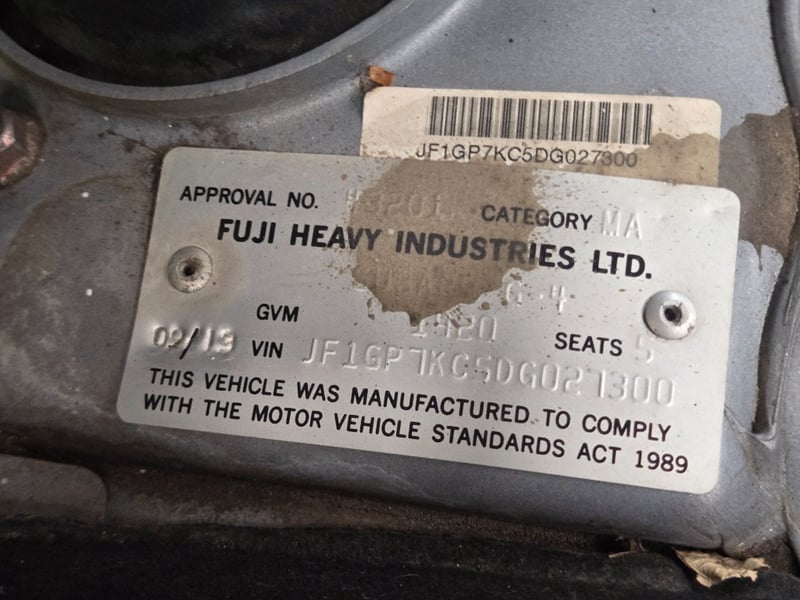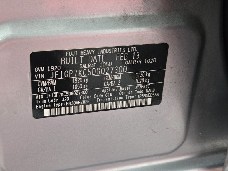 2013 Subaru Impreza GP 2.0i Year: 2013 Make: Subaru Model: Impreza Series: GP Badge: 2.0i Body: 5-Door Hatch Drive Type: All wheel drive Odometer: Indicating 152,322 Kilometres Engine: 2.0 I4 Petrol Transmission: Automatic Colour: Silver Seats: 5 Description/extras: Power windows, SRS, Cruise control, CD player. Price Guide - $5,400 - $7,400 (Based on Unmodified Vehicle) VIN: JF1GP7KC5DG027300 ENG No: R642485 AS PER PPSR (Key #A38) Lloyd's stock #1034469+1 #PCV
