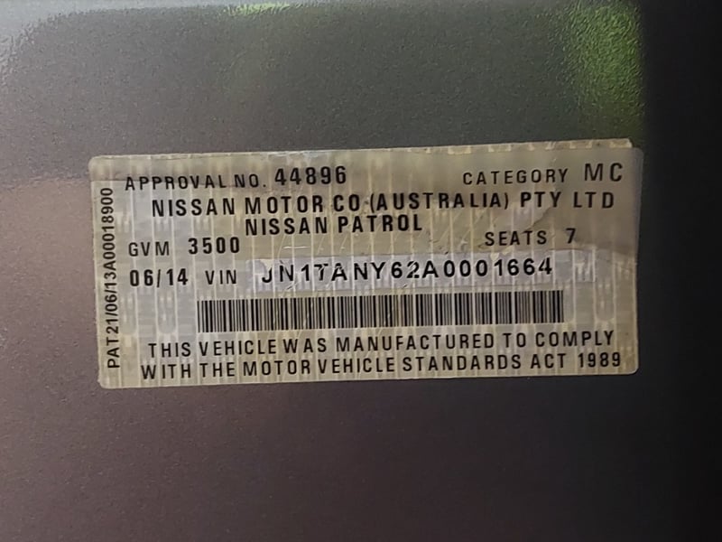 2013 Nissan Patrol Ti Year: 2013 Make: Nissan Model: Patrol Series: Ti Body: 4-Door SUV Drive Type: Four-wheel drive Odometer: Indicating 292,462 Kilometres Engine: 5.6 V8 Petrol Transmission: Automatic Colour: Grey Seats: 7 Description/extras: Air Conditioning, Power windows, SRS, Leather interior, Alloy wheels, AUX / USB, Sunroof, Towbar, Bulbar, Reverse camera, Central locking, CD player. 2x Keys, has books Roof Racks Price Guide - $27,900 - $30,800 (Based on Unmodified Vehicle) VIN: JN1TANY62A0001664 ENG No: VK56089488A (as per PPSR) #PCV (Key # unknown) Lloyd's stock #1037732+1