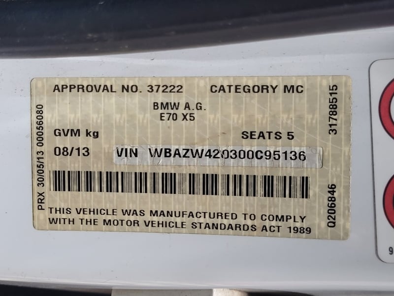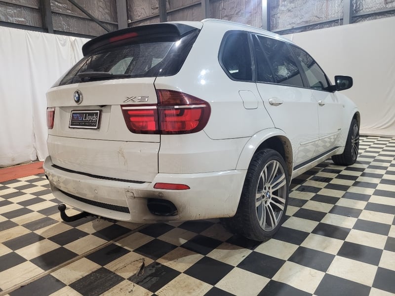 2013 BMW X5 E70 XDrive 30d Year: 2013 Make: BMW Model: X5 Series: E70 Badge: XDrive 30d Body: 4-Door SUV Drive Type: All wheel drive Odometer: Indicating 258,653 Kilometres Engine: 3.0 Turbo Diesel Transmission: Automatic Colour: White Seats: 5 Description/extras: Air Conditioning, Power windows, SRS, Sat Nav, Digital dash, Tinted windows, Alloy wheels, Towbar, Reverse camera, Central locking, CD player. Price Guide - $11,200 - $13,850 (Based on Unmodified Vehicle) VIN: WBAZW420300C95136 ENG No: 31788515 (AS PER PPSR) (Key #PCV20) Lloyd's stock #153908+1 #PCV