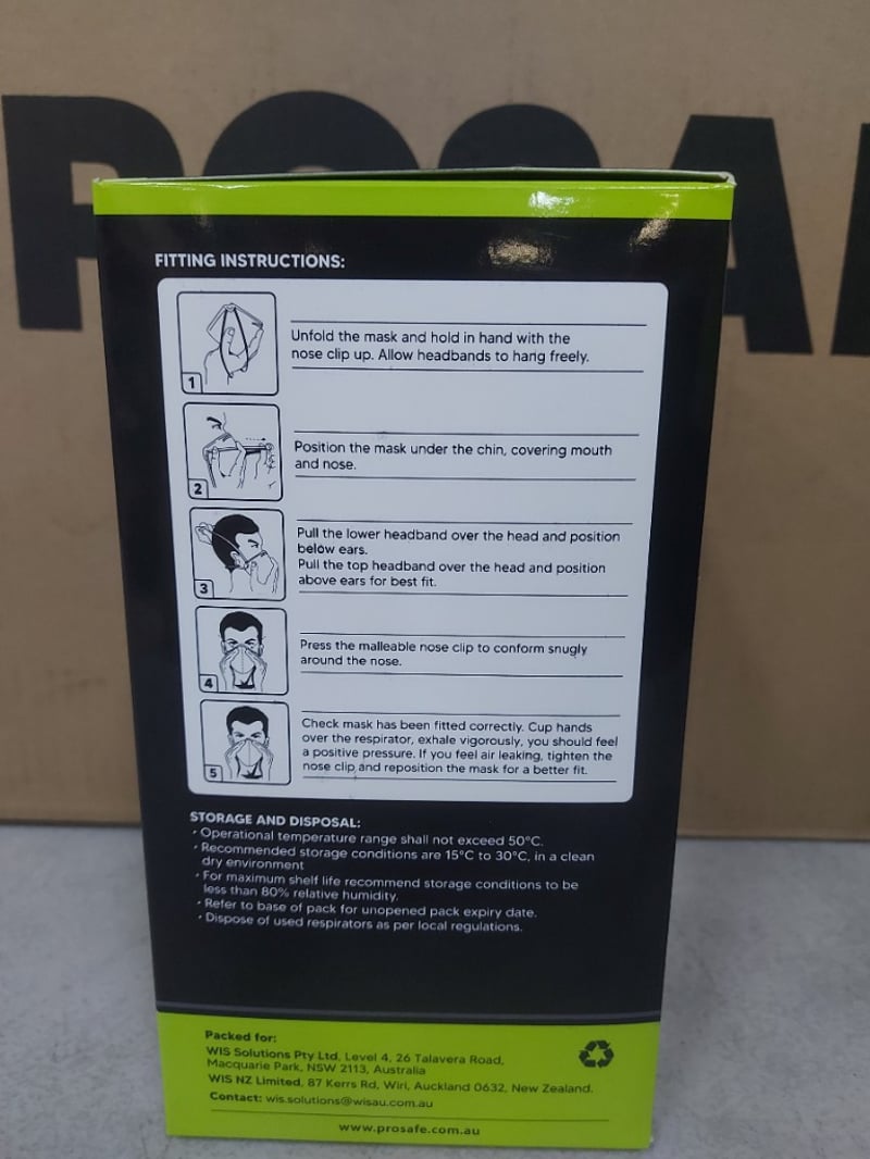 PROSAFE respirator (P2 VFF002) 30 packBID PER EACH, MUST TAKE 2