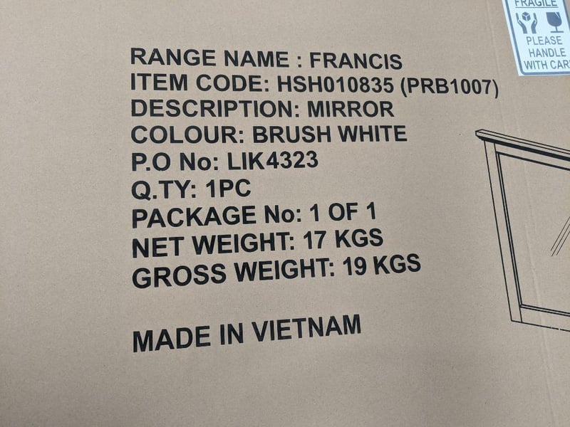 Large Mirror, Francis, Item Code: HSH010835(PRB1007), P/N: LIK4323, Brush WhiteApproximate Packaged Dimensions: H120cm x W100cm x D10cm