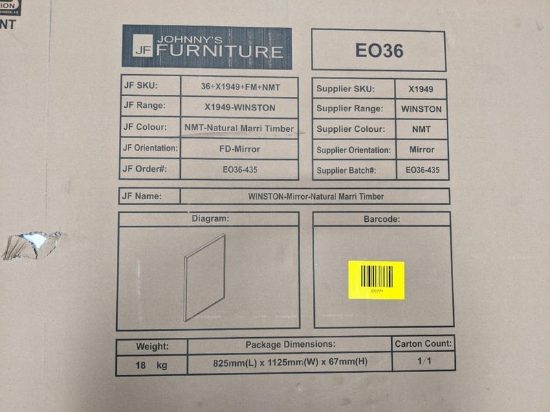 Large Mirror, Johnny's Furniture, Winston, Unit No# 36+X1949+FM-NMT, Range: X1949-WINSTON, Natural Marri Timber