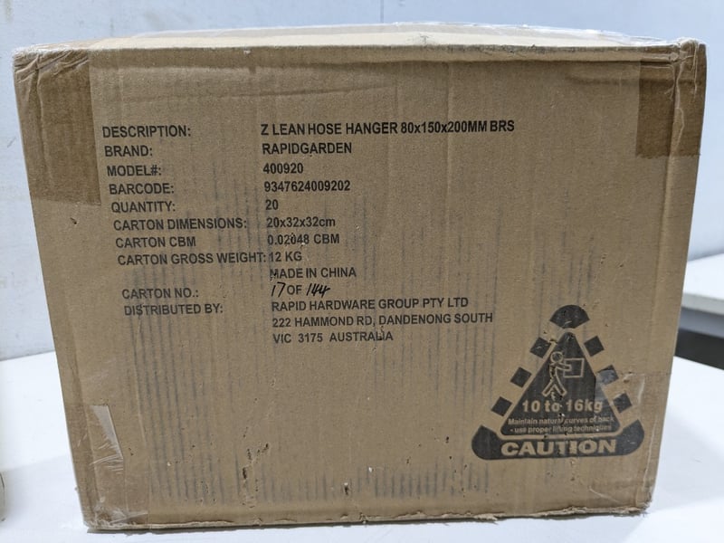 Zlean hose hanger Dims: 80x150x200mmBRS QTY: 80 per lot. Sold as a lot