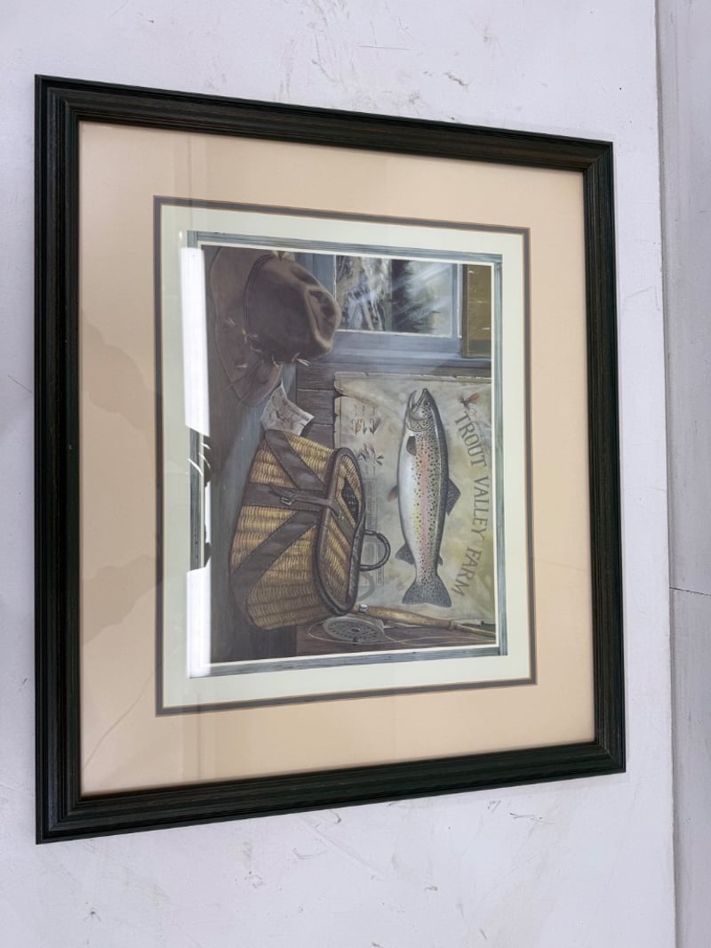Decorative Wall Art, Green Frame, Tittle: Trout Valley. Rough Dimensions-60h x 71w Quantity-1