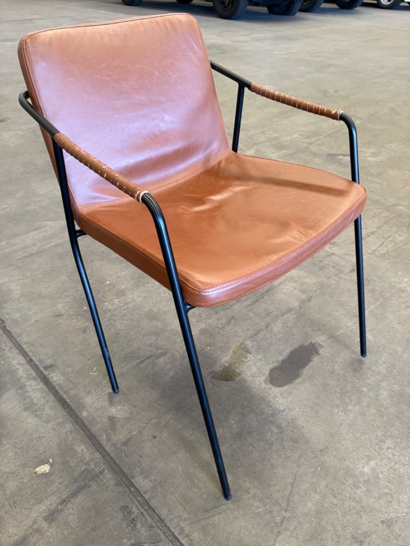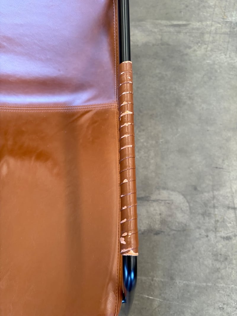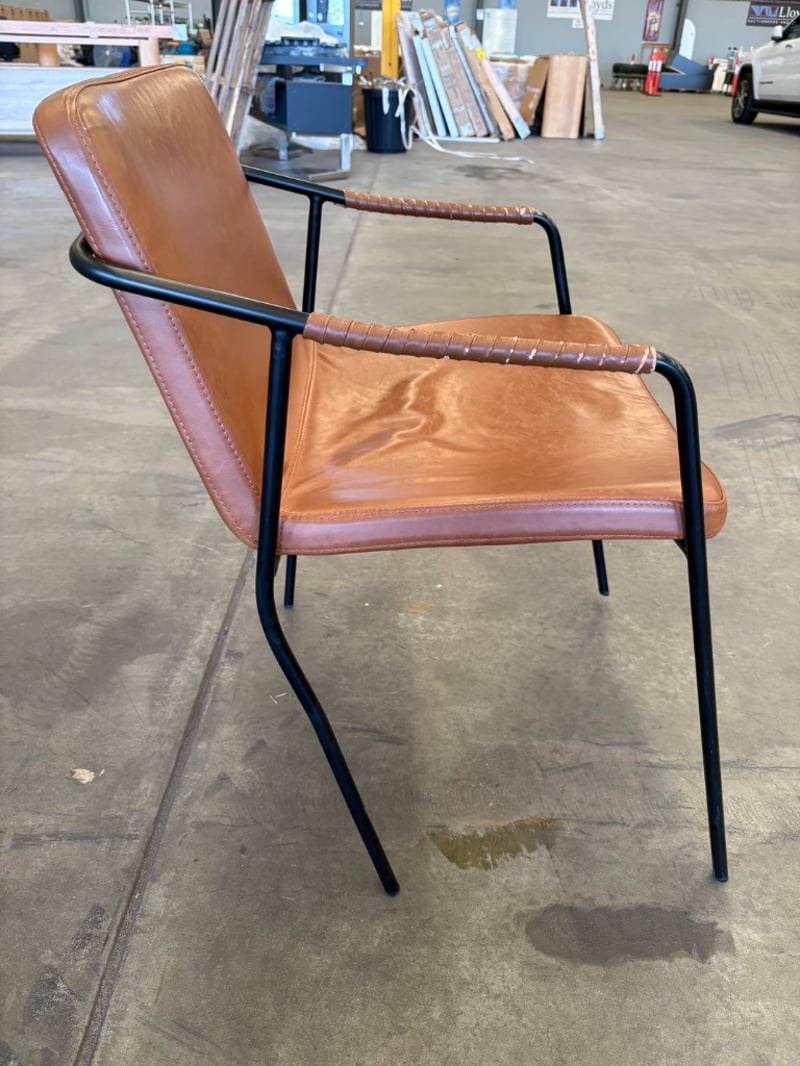 Leather Style Chair with Metal Style Legs. Note: This Item has a Bent Leg.