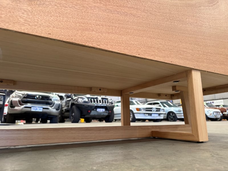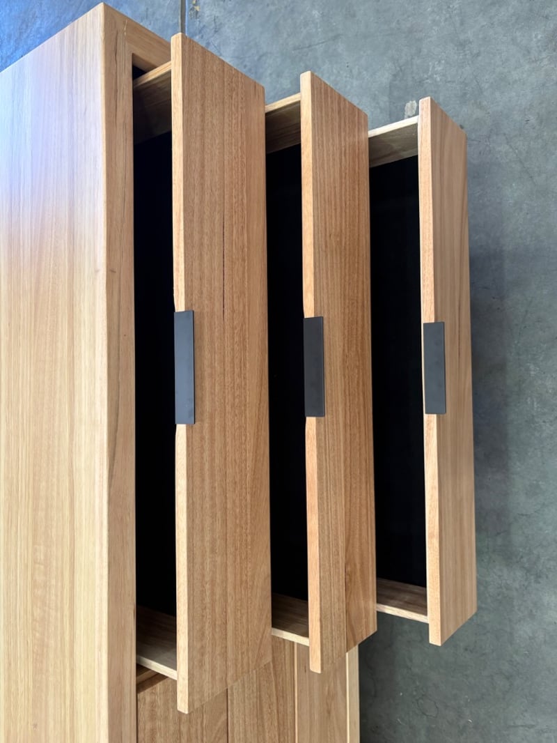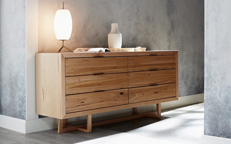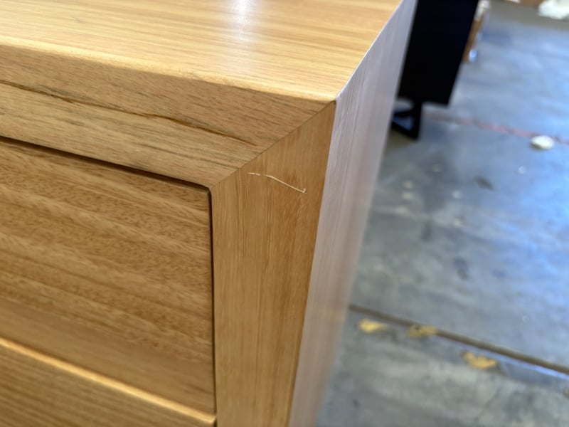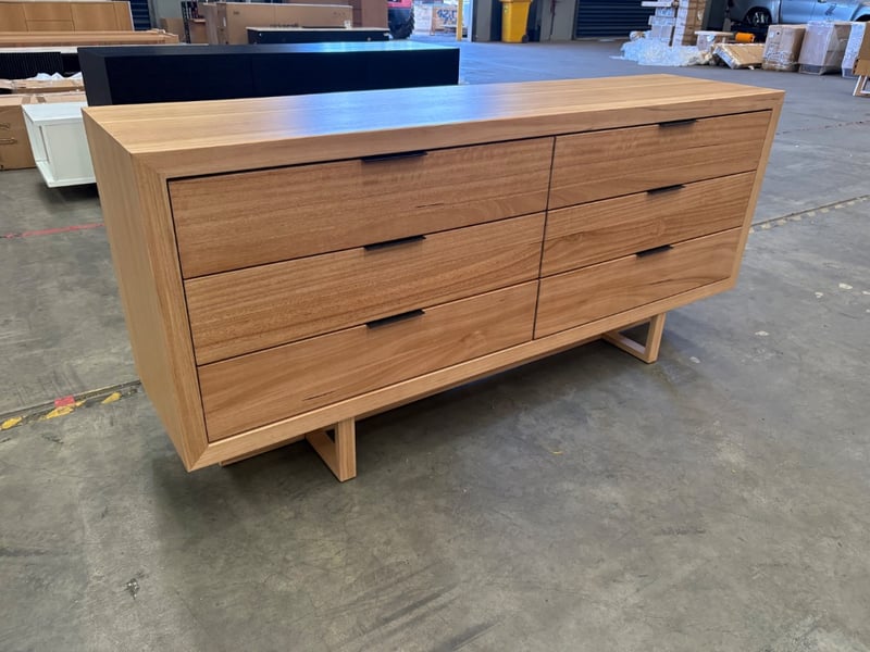 RRP$2690. Dresser, Warm Timber Style with Metal Handles on Geometric Style Legs.