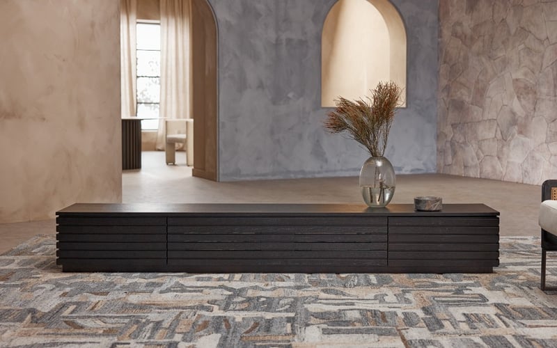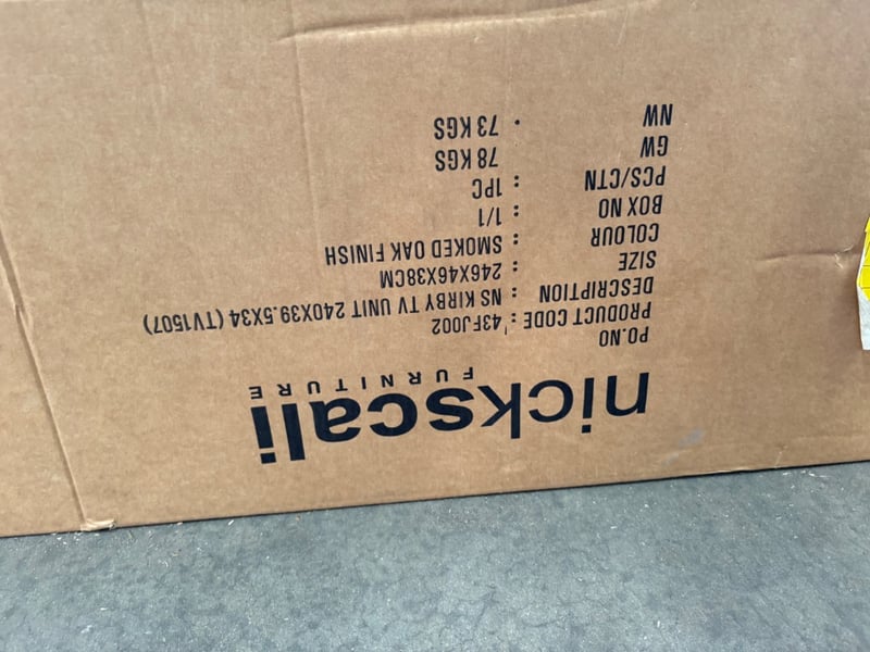 RRP$2590 TV Entertainment Unit. Smoked Oak Timber Style. In Box. Inspections Recommended.