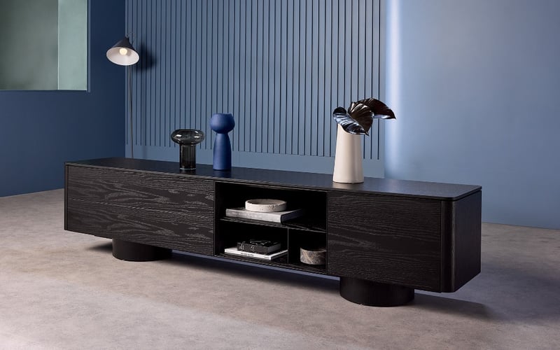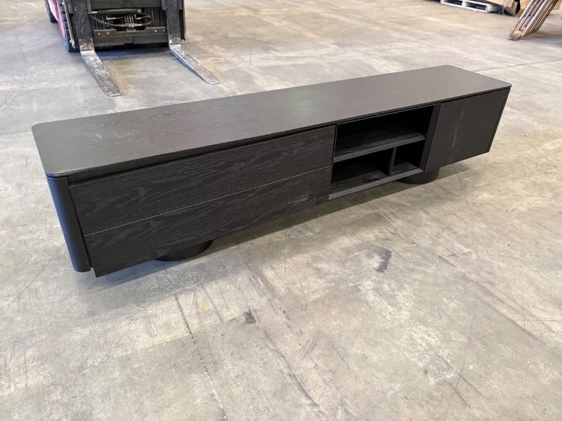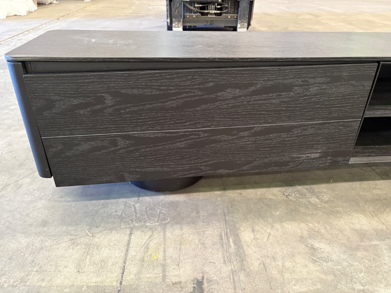 TV Entertainment Unit. Smoked Oak Timber Style with Curved Legs.