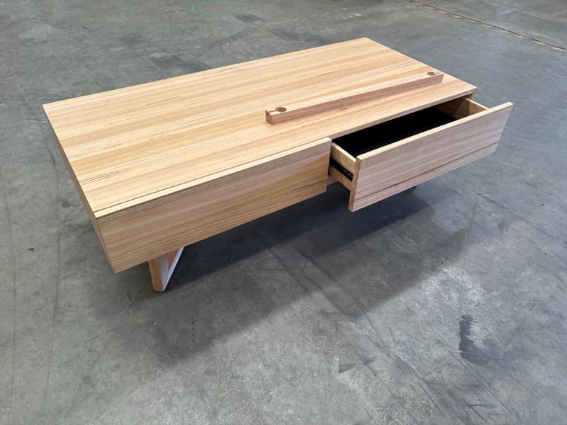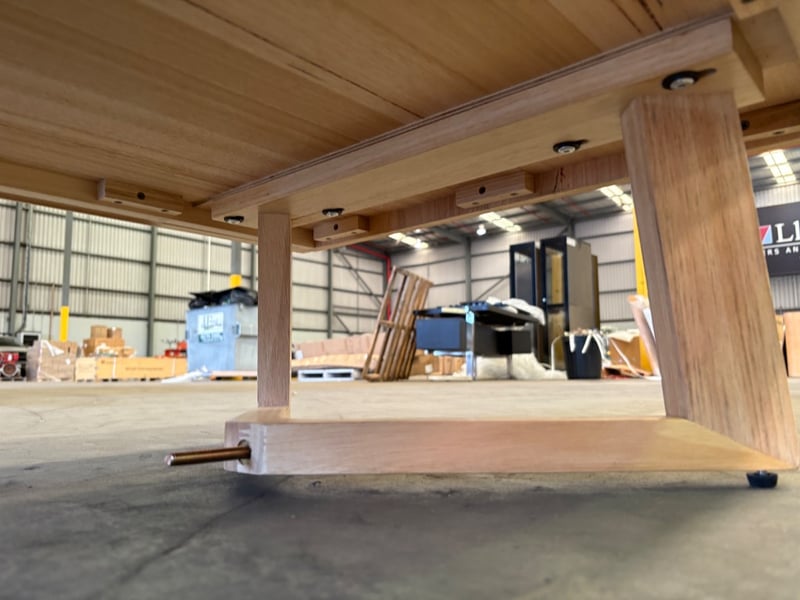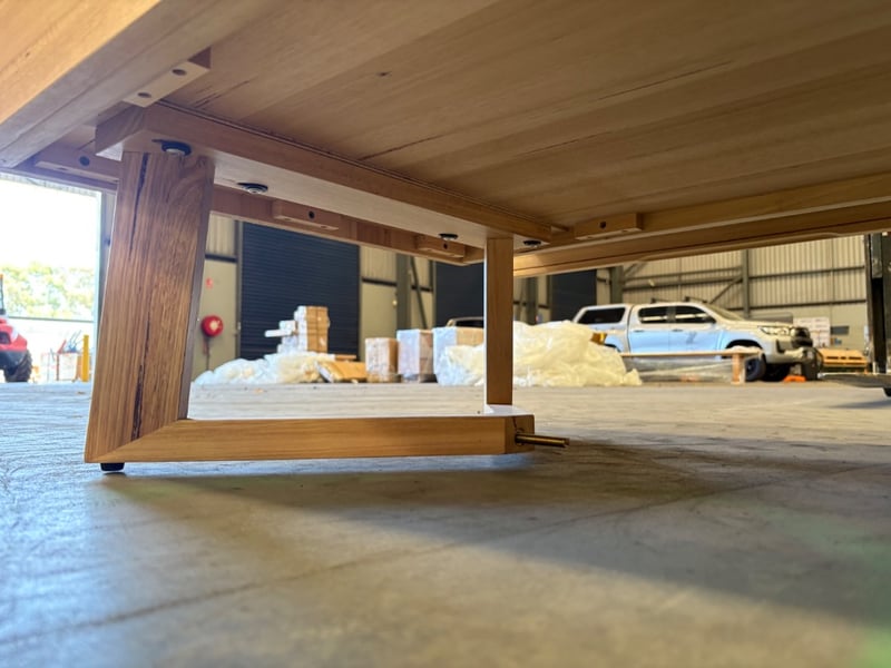 RRP$1190. Coffee Table. Australian Oak Style with Geometric Legs. Dimensions : Approx 140x68x24Note: This item is damaged. Inspections Recommended.
