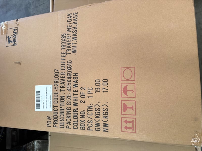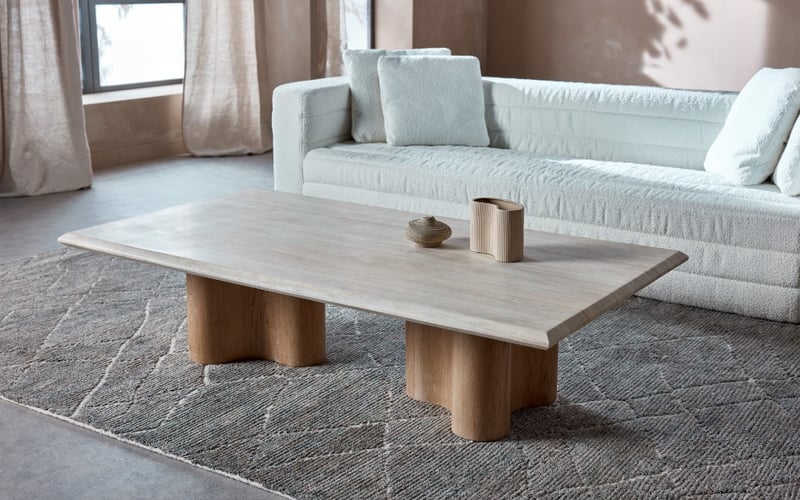RRP$1990. Coffee Table Small. White Washed Oak Timber Style Legs with Marble Look Top.
