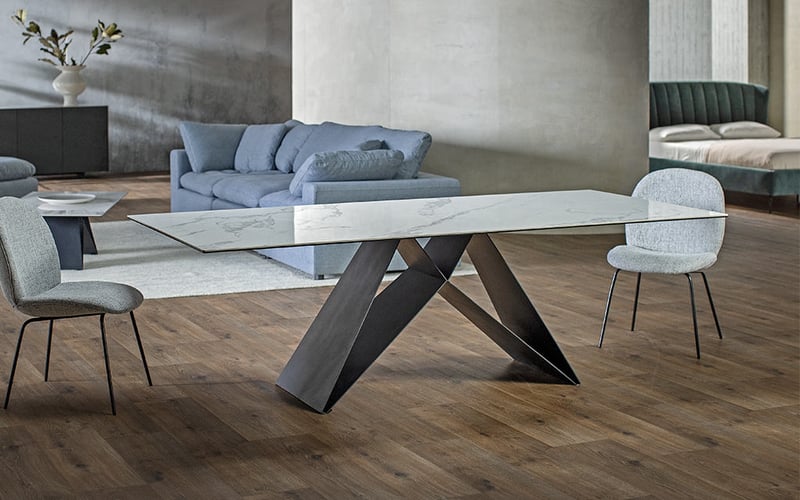 RRP$1390. Dining Table. Ceramic Top with Steel Legs. Package Dimensions (TABLE) 190x105x6.5, (LEGS) 125x57x71, (MOUNTING BRACKET) 135x55x7 Note : Item may have marks/scratches. Inspections Recommended.