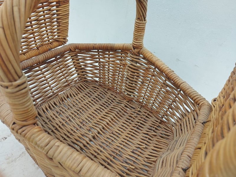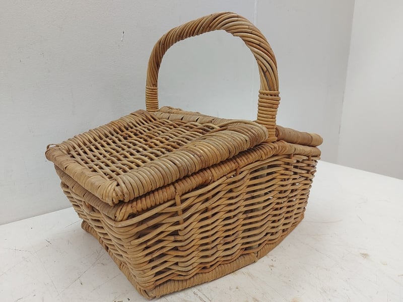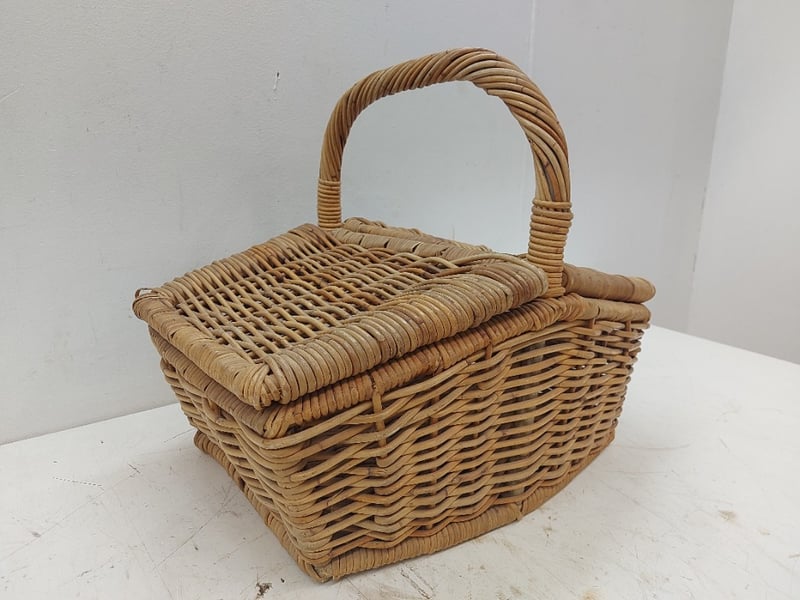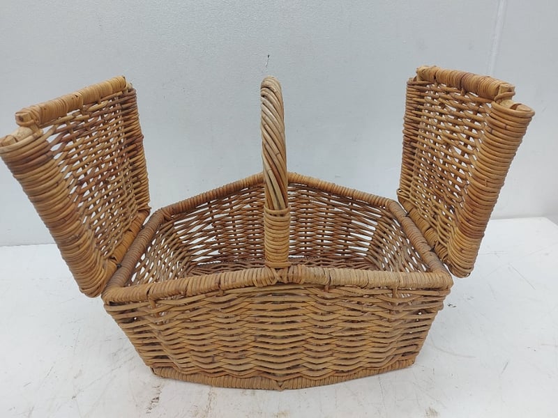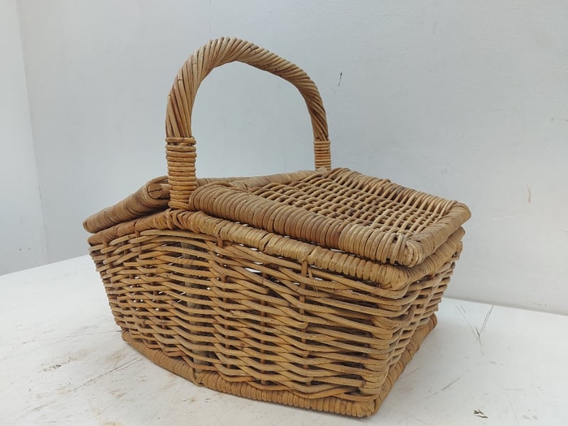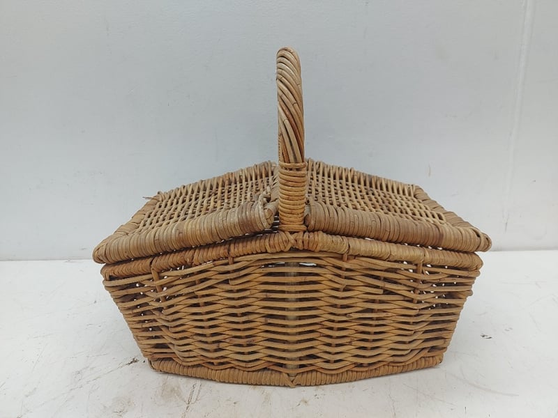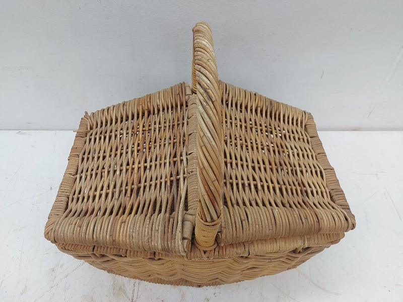 Caine Picnic Basket, With Handle, Two Lids, Dimensions 46cm(H)×63cm(W)×42cm(D)