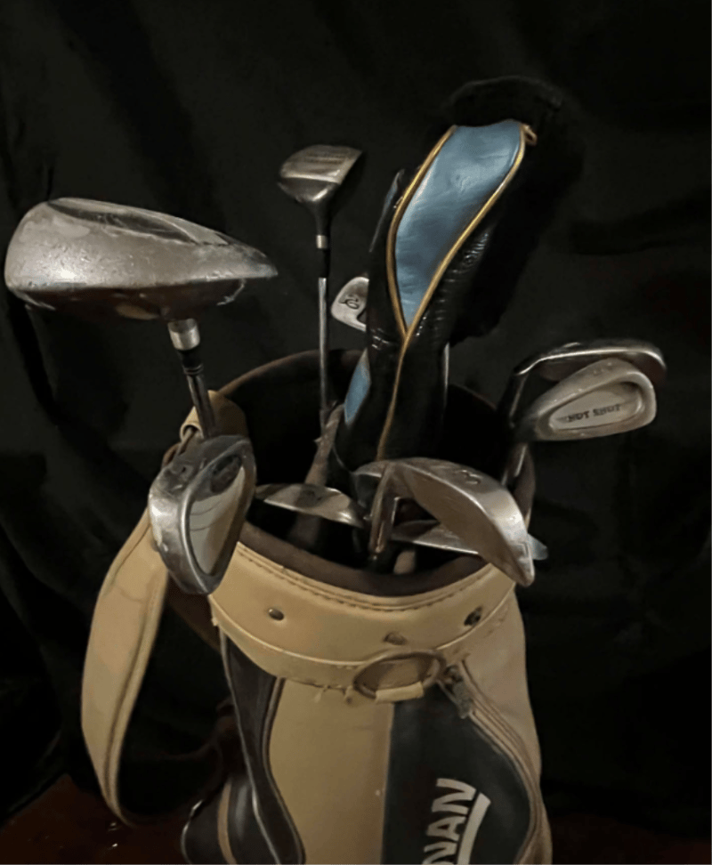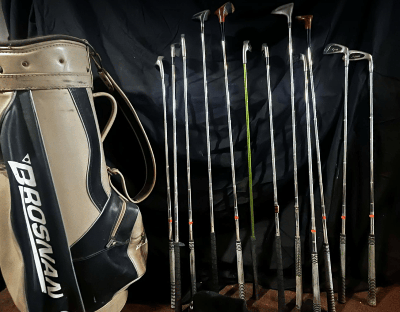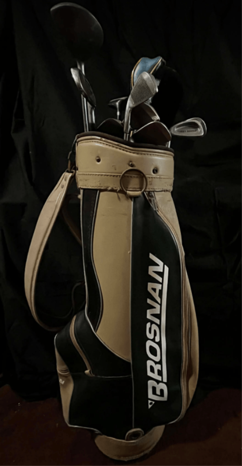 Brosnan Golf bag & Brosnan/ mixed Golf clubs. Refer to images.