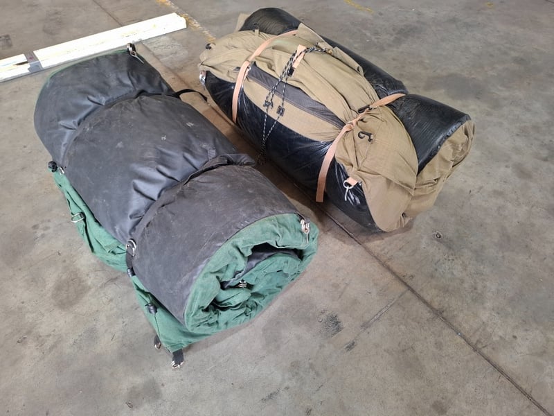 Assortment of 2 x rolled-up camping swag, a portable, all-in-one