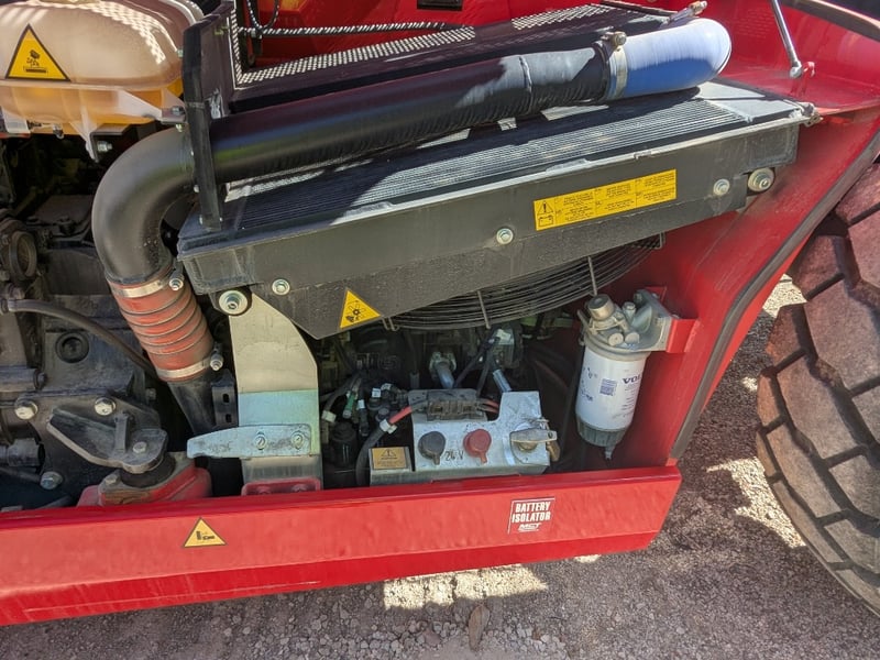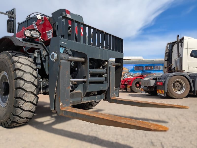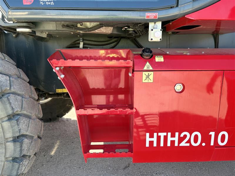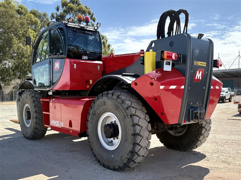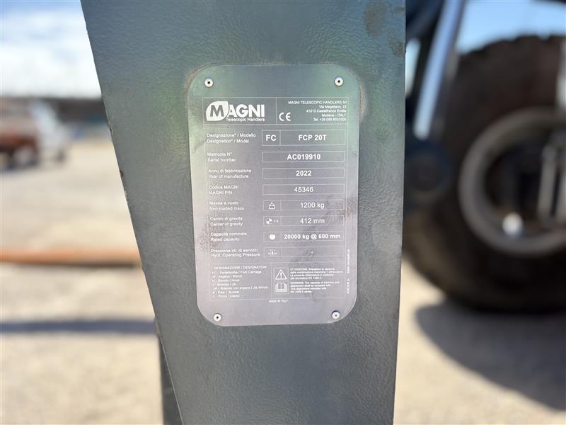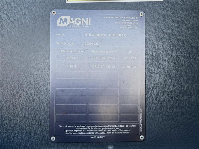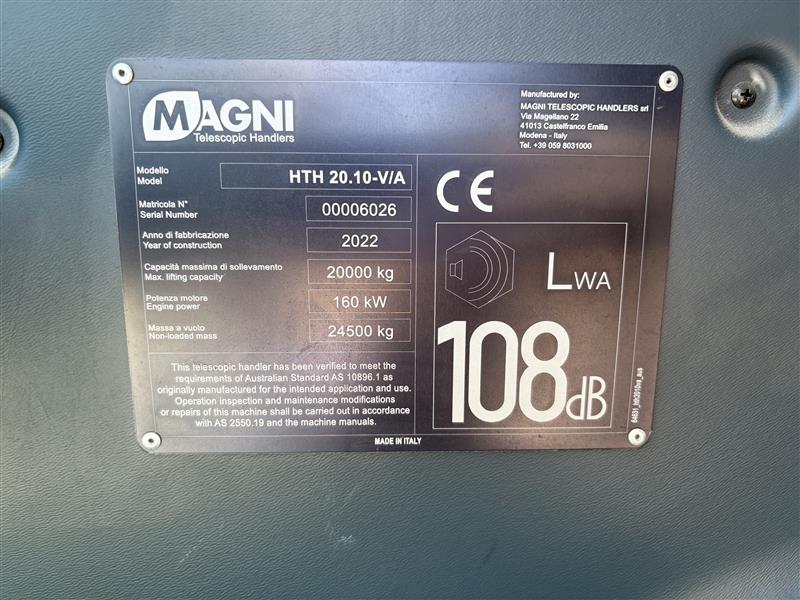 2022 Mangi HTH20.10 Telehandler Manufacture Year: 2022 Make: Mangi Model: HTH20.10 Type: Heavy Duty Telehandler Serial Number: 6026 Configuration: Rubber Cabin: Enclosed A/C Transmission: Hydrostatic transmission Hour Meter Indicated: 398 hours Engine: 4-Cylinder Turbo Diesel Engine Make: Volvo Engine Model: TAD 572 VE Power: 160 Kilowatts (KW) Buckets: Forks Colour: Red Description/extras: Hydraulic quick coupler, Enclosed air-conditioned ROPS/FOPS cabin, Front & rear work lights, Front and Rear camera & sensors, Load management system, Forks included, Joystick controls, Reverse alarm, Emergency stops, Dead-man switch. Battery isolator. Electronic Steering Selector from Three Different Modes. Chassis Levelling. Non Loaded Mass : 24,000kgs Max Lifting Capacity : 20,000kgs @ 600mm. Marks and Scratches consistent with use. (Whilst high volumes of incoming products prevent us from testing every incoming item individually - Lloyd's do not knowingly sell faulty items. Inspection is welcomed) (Key #CTM5) Lloyds stock #233067+1