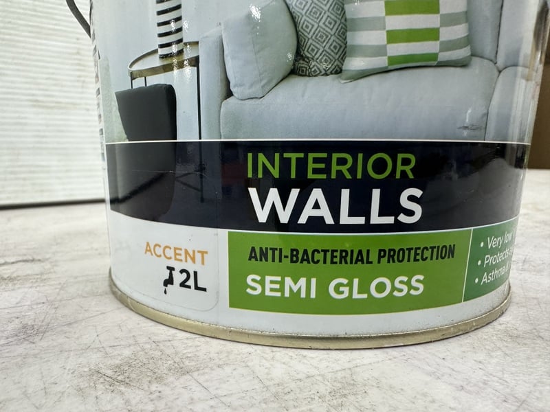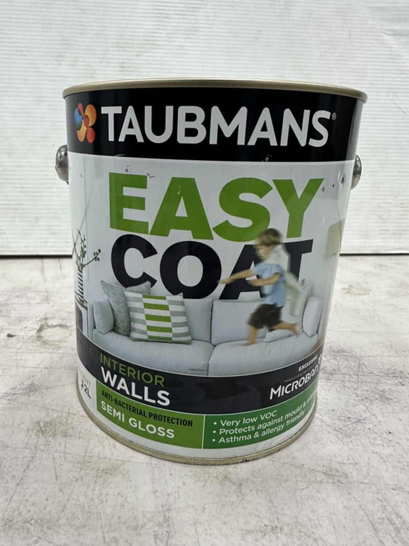 **UNRESERVED** Paint, Taubmans, Easy Coat, Interior Walls, Semi Gloss, Accent, 2L Tin BID PER LITRE, MUST TAKE 8 LITRES