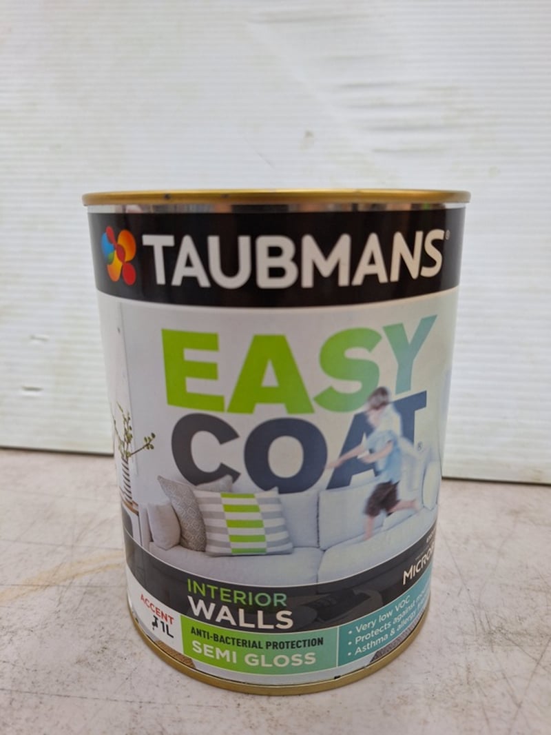 Paint, Taubmans, Easy Coat, Interior Walls, Semi Gloss, Accent, 1L Tin