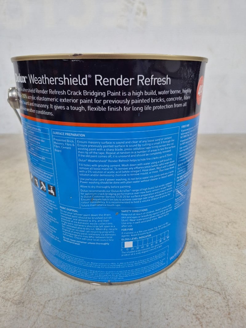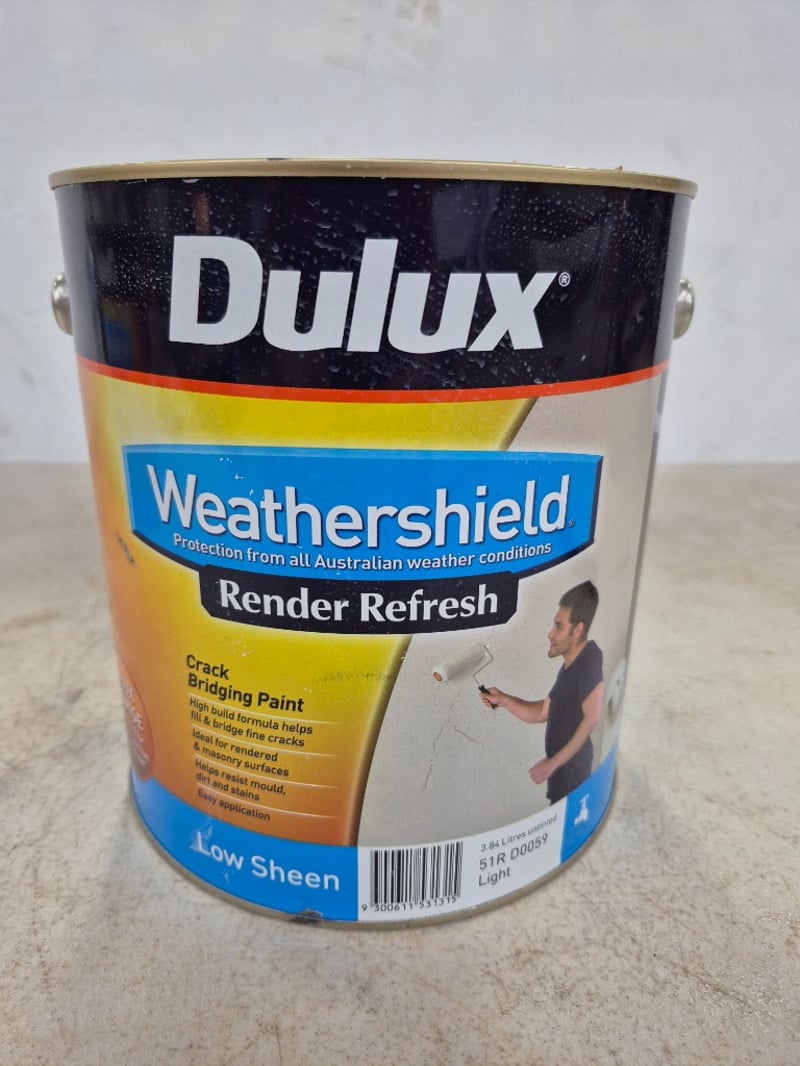 Paint, Dulux Weathershield, Rendor Refresh, Low Sheen, untinted 4L
