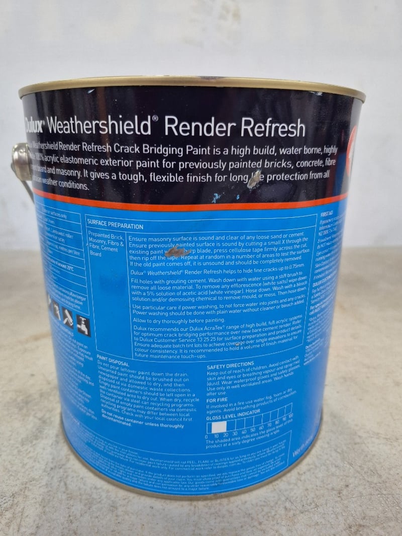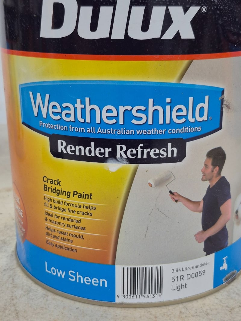 Paint, Dulux Weathershield, Rendor Refresh, Low Sheen, untinted 4L