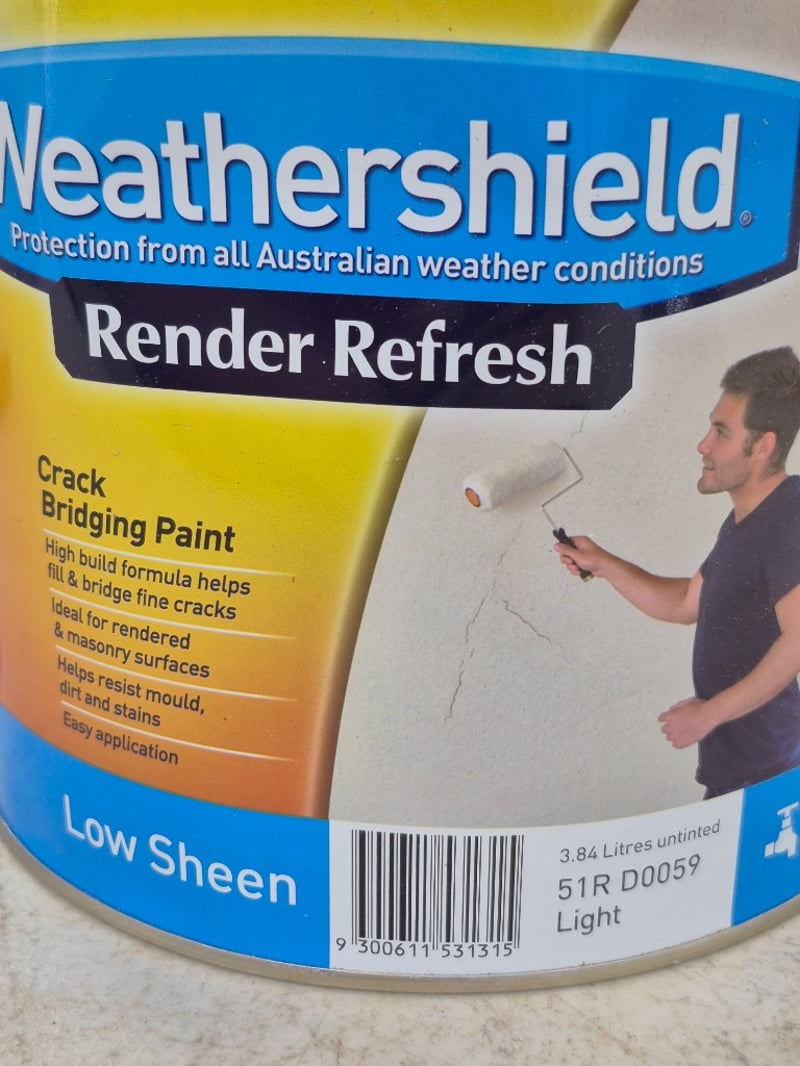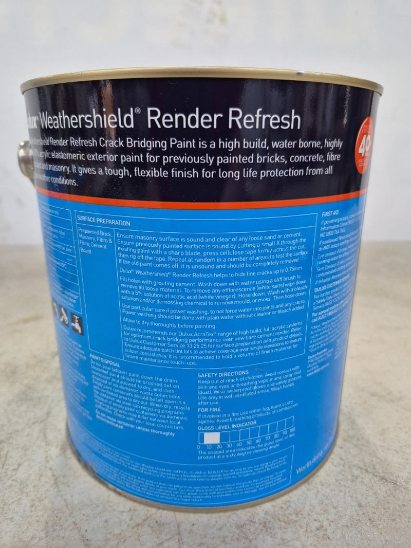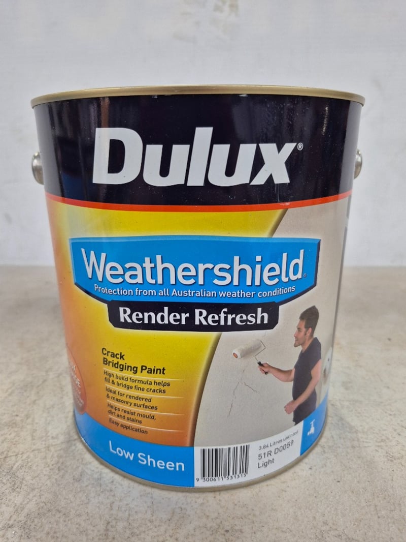 Paint, Dulux Weathershield, Render Refresh, Low Sheen, untinted 4LBID PER LITRE, MUST TAKE 4 LITRES