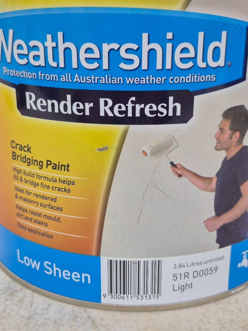 Paint, Dulux Weathershield, Rendor Refresh, Low Sheen, untinted 4L