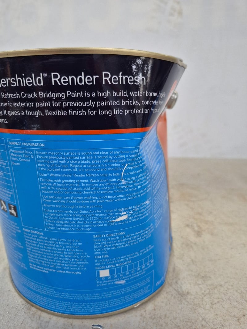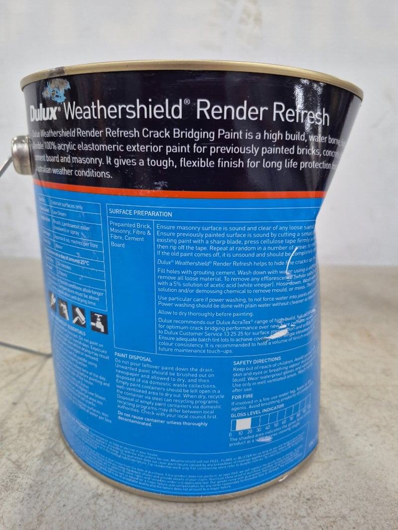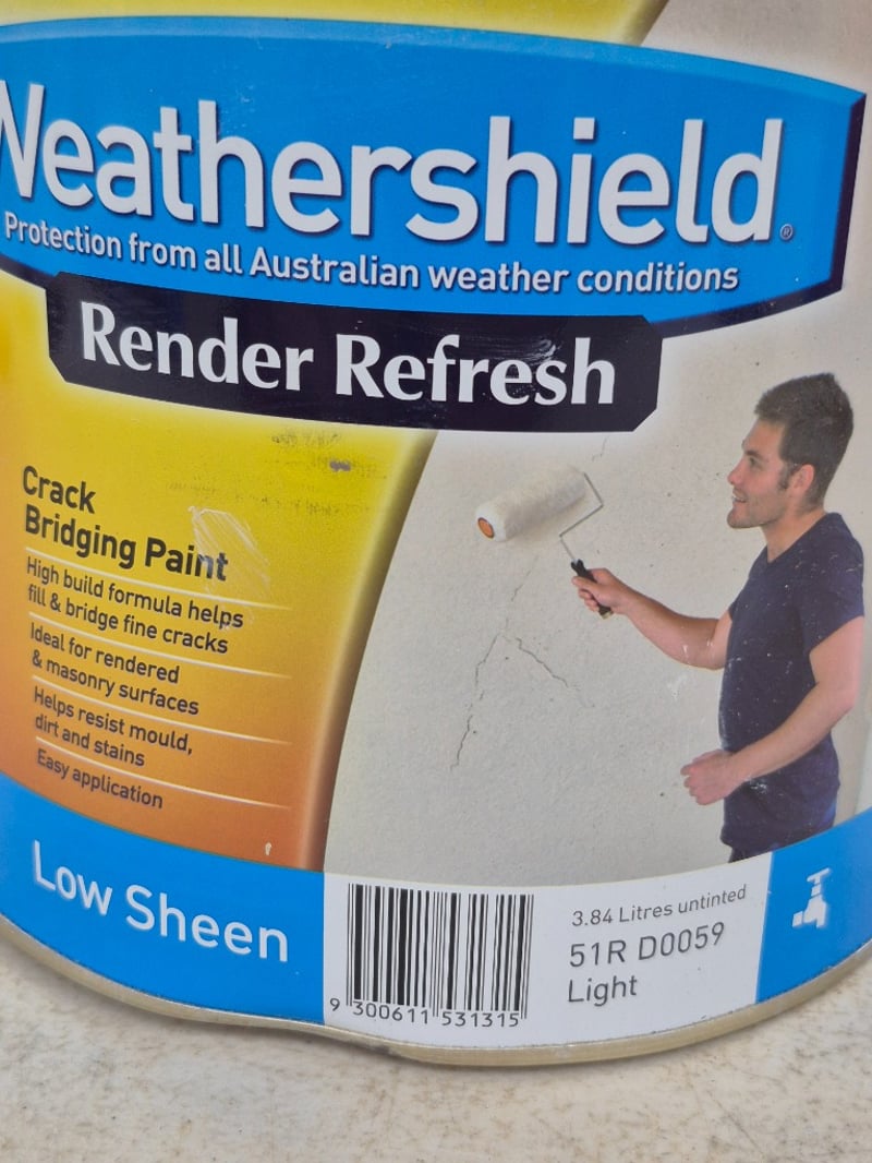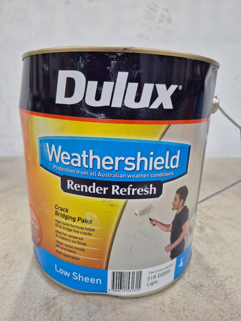 Paint, Dulux Weathershield, Rendor Refresh, Low Sheen, untinted 4L