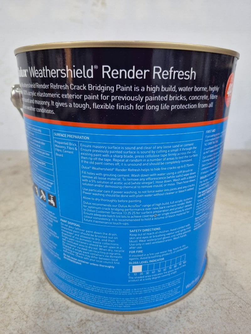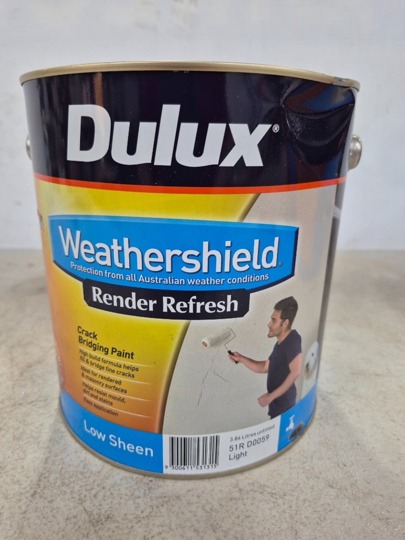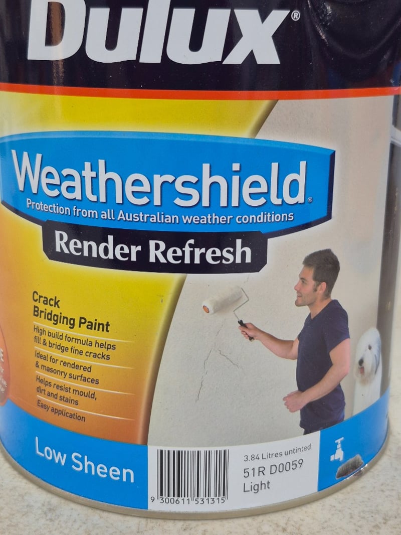 Paint, Dulux Weathershield, Render Refresh, Low Sheen, untinted 4L