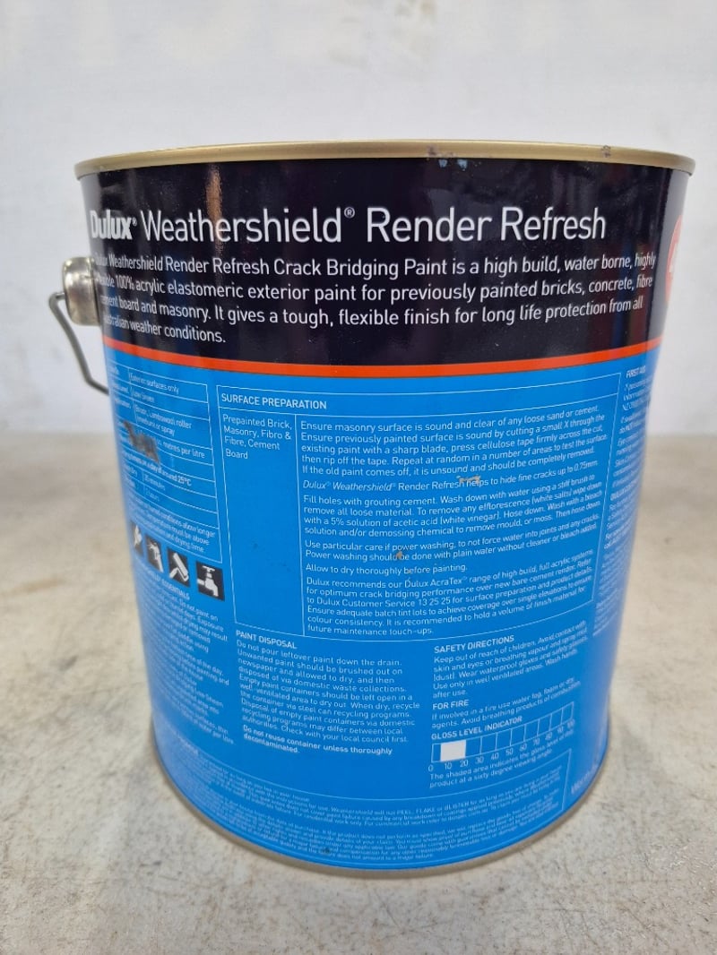 Paint, Dulux Weathershield, Render Refresh, Low Sheen, untinted 4L