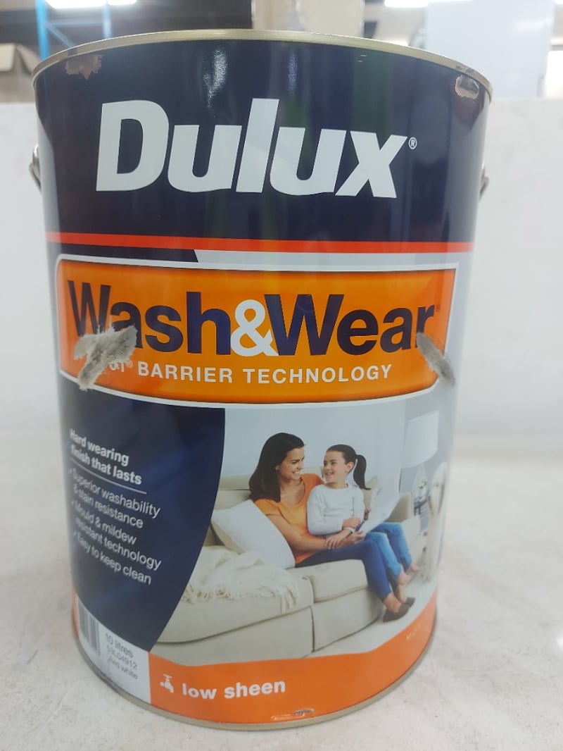 Paint, Dulux, Was & Wear, vivid white, low sheen, 10LBID PER LITRE, MUST TAKE 10 LITRES