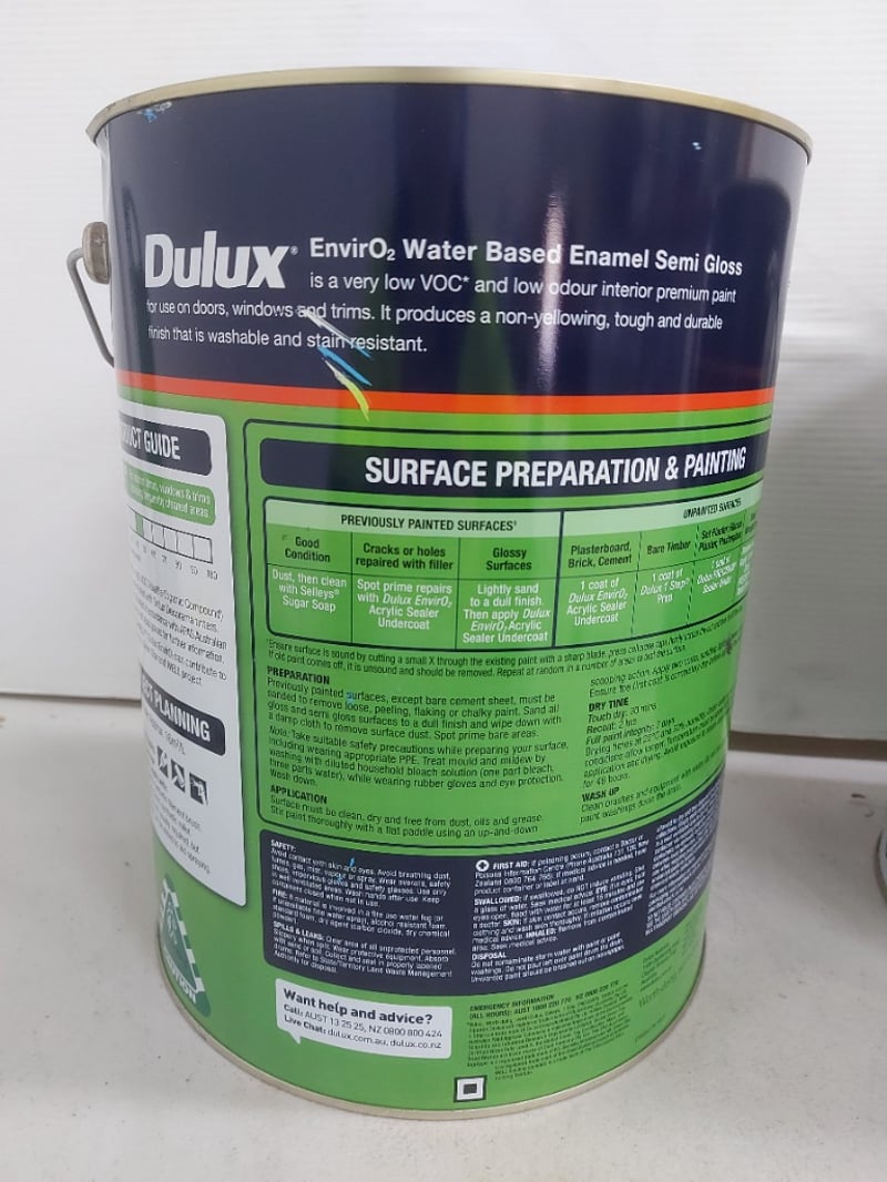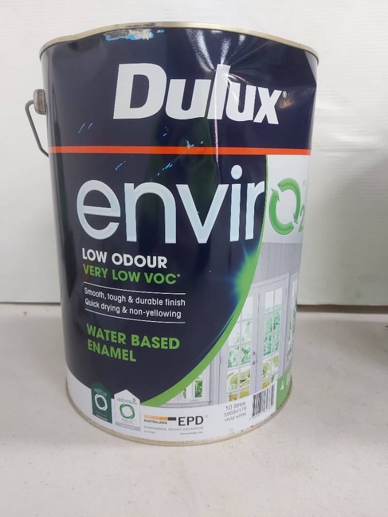 Paint, DULUX, ENVIRO2, WATER BASED ENAMEL, SEMI GOSS, VIVID WHITE, 10 Litres