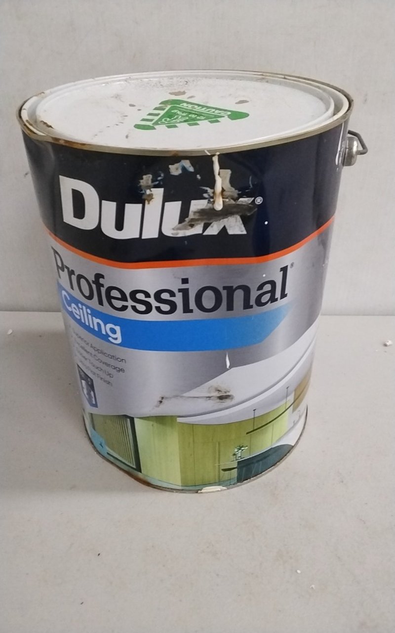 Paint, Dulux Professionals Ceiling PaintColour, Flat White10 litre tinNote dented tinBID PER LITRE MUST TAKE 10 LITRE TIN,