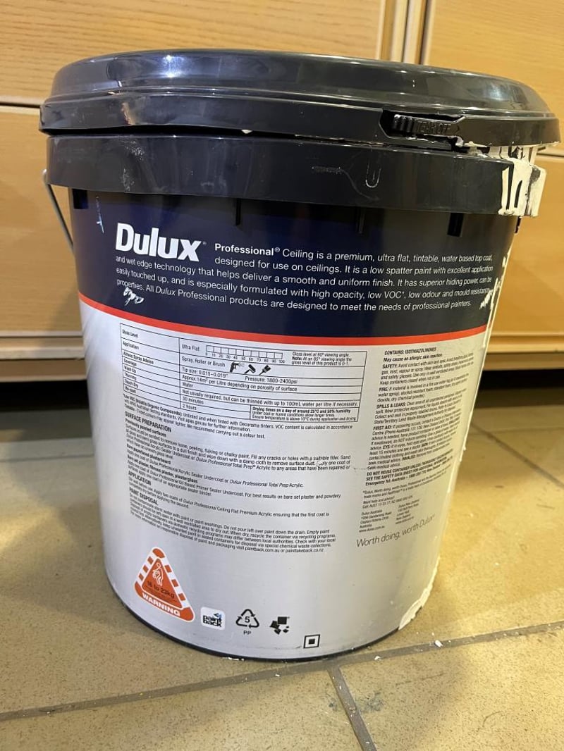 Paint, Dulux Professional Ceiling, White 15L TinBID PER LITRE, MUST TAKE 15 LITRE