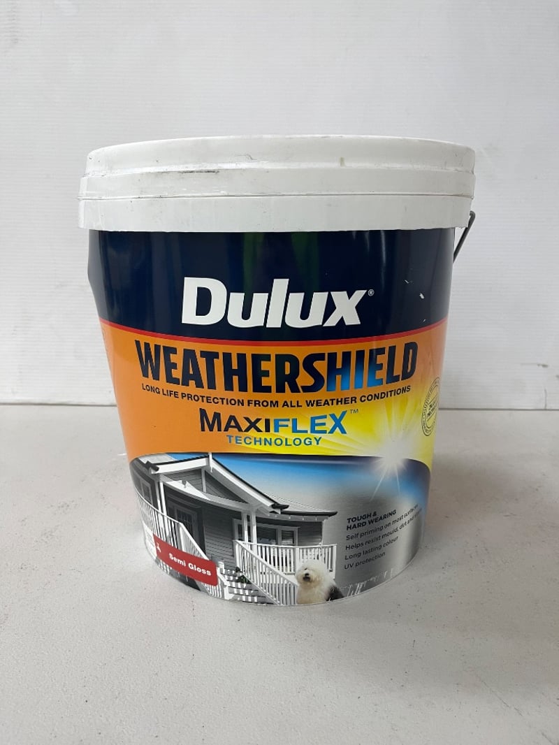 Paint, Dulux Weather shield, Semi Gloss, Vivid White 15L Tin